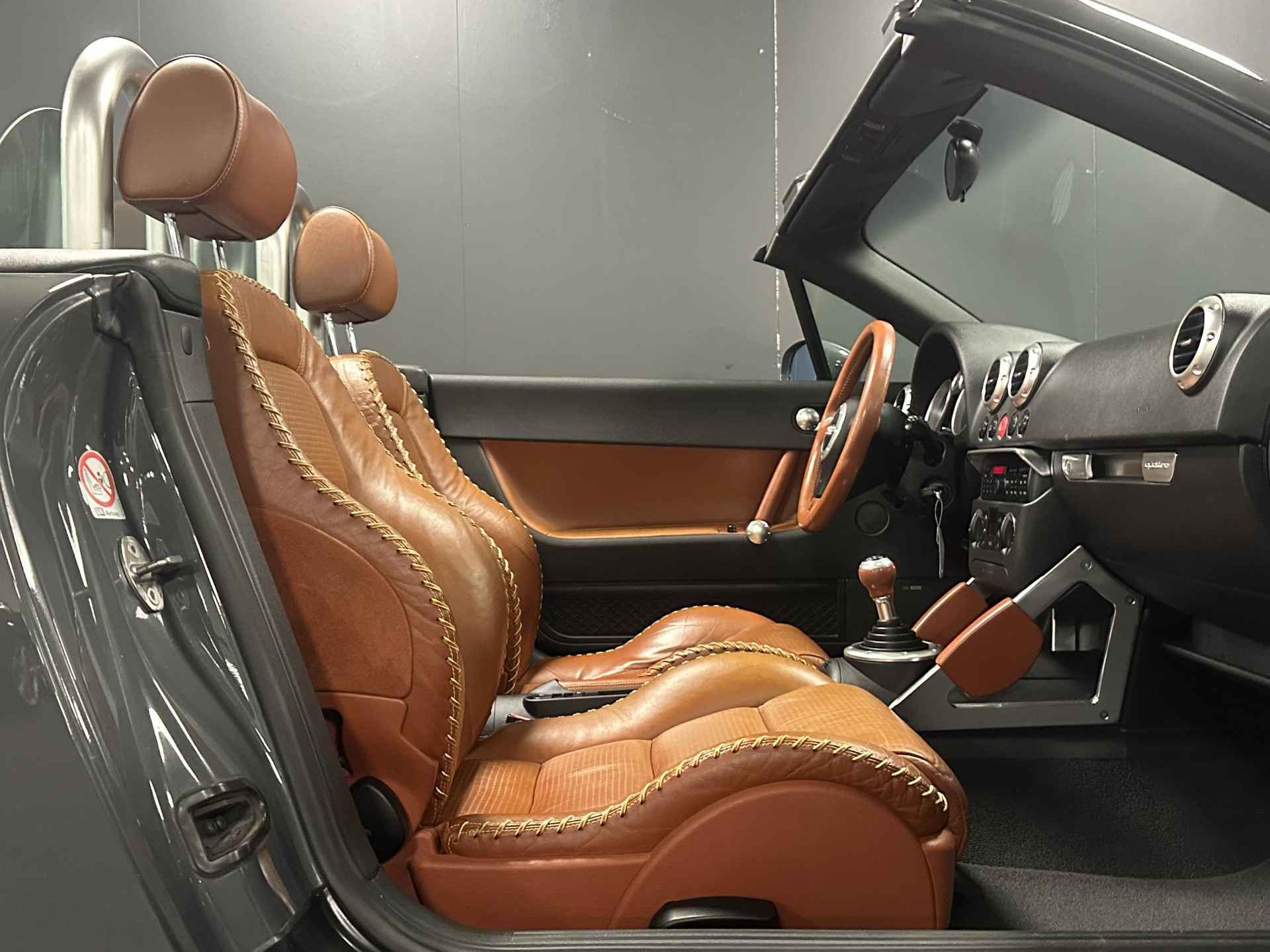 Nieuw binnen. Origineel Nederlandse Audi TT roadster Quattro met 225pk, in de unieke kleurencombinatie nimbusgrijs met bruin base ball leder. In geheel originele verzamelaars staaTT. Tegen meerprijs van €1450,- leverbaar met een originele hardtop in kleur