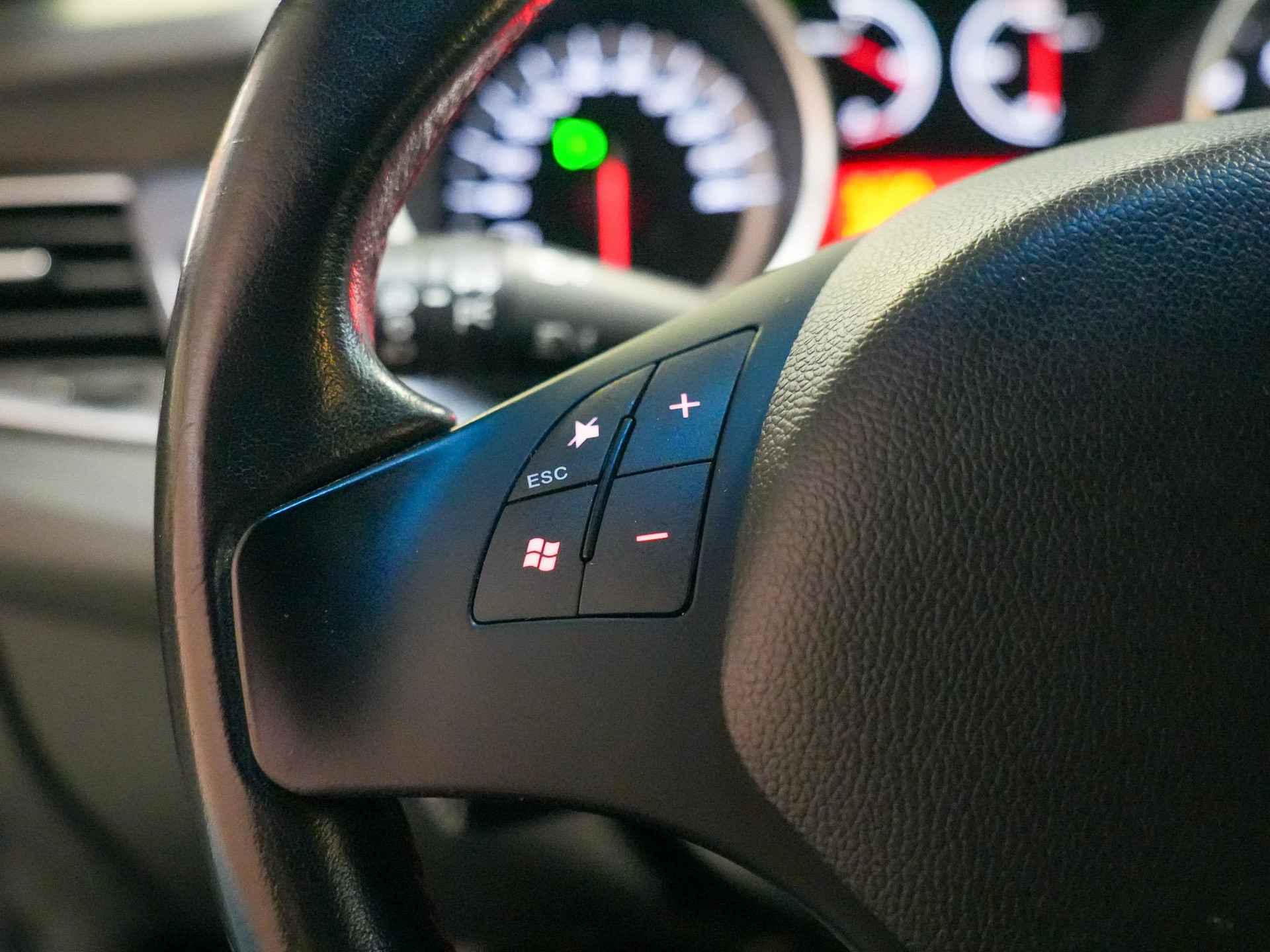 De bediening van het audiosysteem gebeurt met knoppen op het stuur. De automatische airconditioning zorgt voor een prettige binnentemperatuur. Cruise control houdt automatisch de ingestelde snelheid vast. Het is een ideaal hulpmiddel om lange ritten comfortabeler te maken. En deze auto heeft ook automatisch dimmende buitenspiegels, lederen stuur en centrale deurvergrendeling met afstandsbediening als standaard uitrusting.