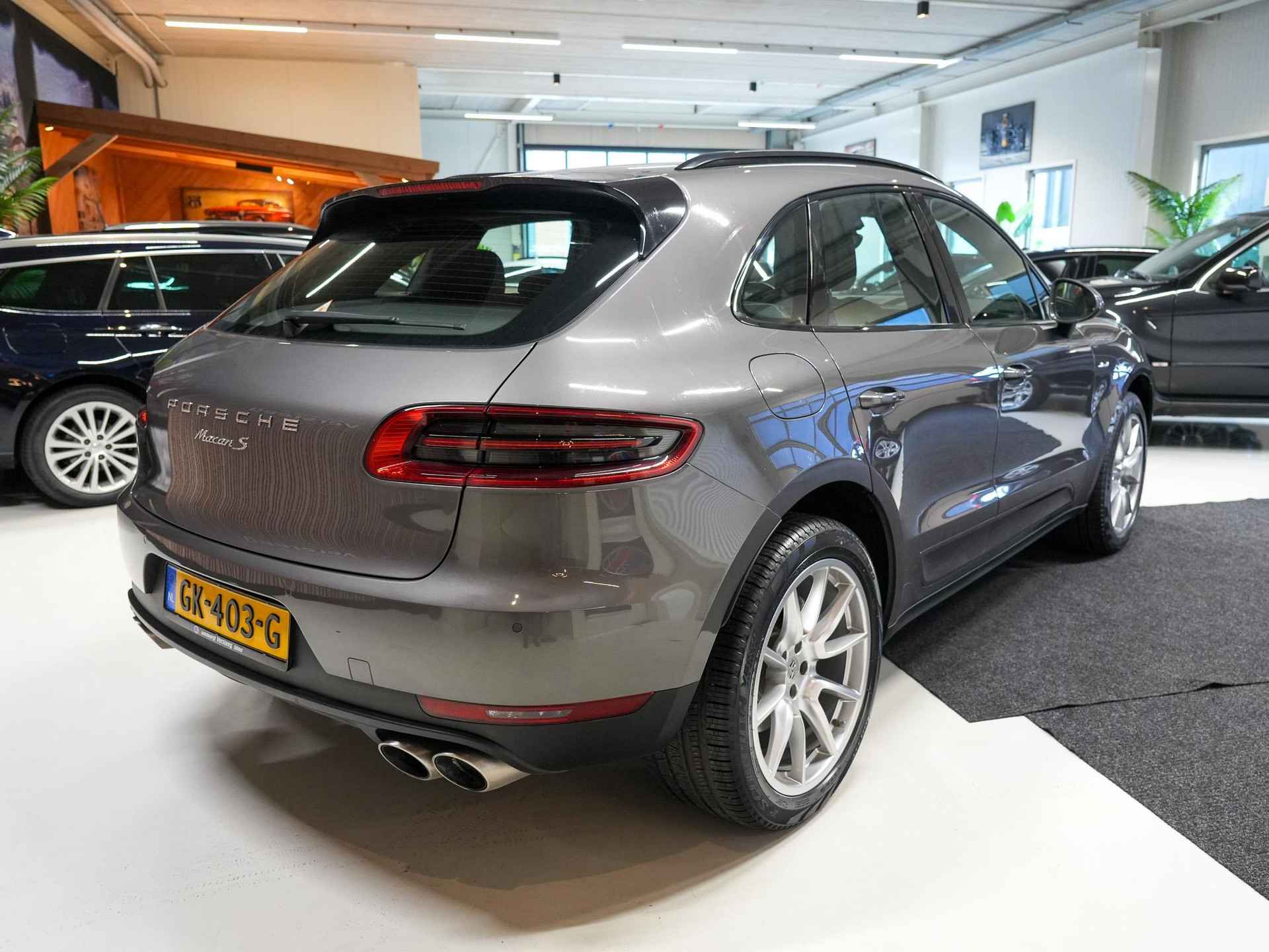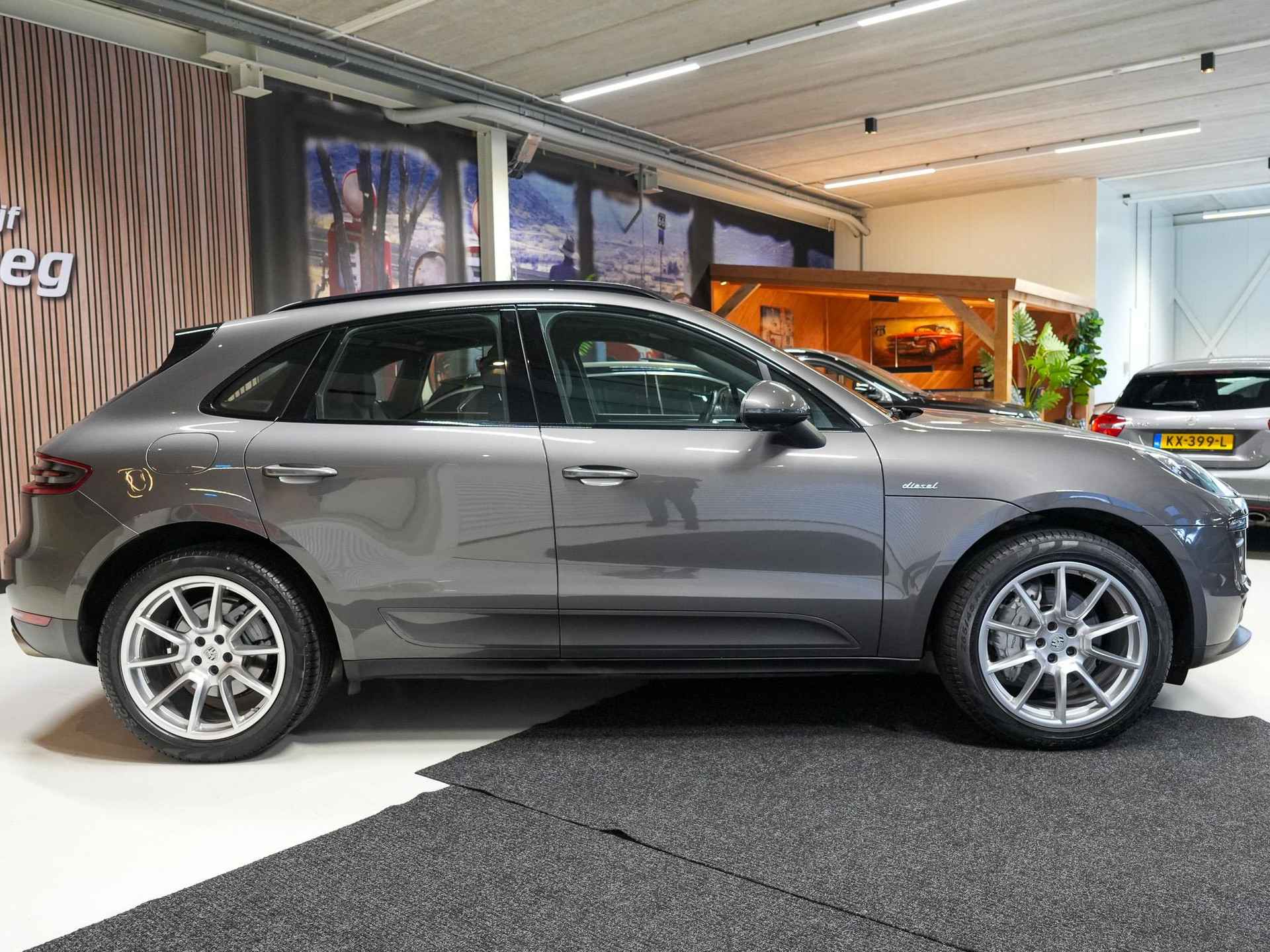Laat u niets wijsmaken, deze Porsche Macan biedt alles wat u van een auto verlangt. Hij heeft een dieselmotor en een automatische transmissie. In weer een wind een cabrio-gevoel? Daarvoor zorgt het elektrisch bediende glazen panorama dak. En het moeiteloos in- en uitladen is te danken aan de elektrisch bedienbare achterklep. Doe maar luxe! Neem plaats in de verwarmbare voorstoelen en voel de weldaad in koude dagen. Hobbels en kuilen in de weg? U voelt er niets van, dankzij de luchtvering en de comfortstoelen. Xenonverlichting zorgt in het donker voor beter zicht. Bij de rijke uitrusting horen ook 20 inch lichtmetalen velgen, adaptief dempingsysteem, warmtewerend glas, in delen neerklapbare achterbank, verwarmde ruitensproeiers en snelheidsafhankelijke stuurbekrachtiging.