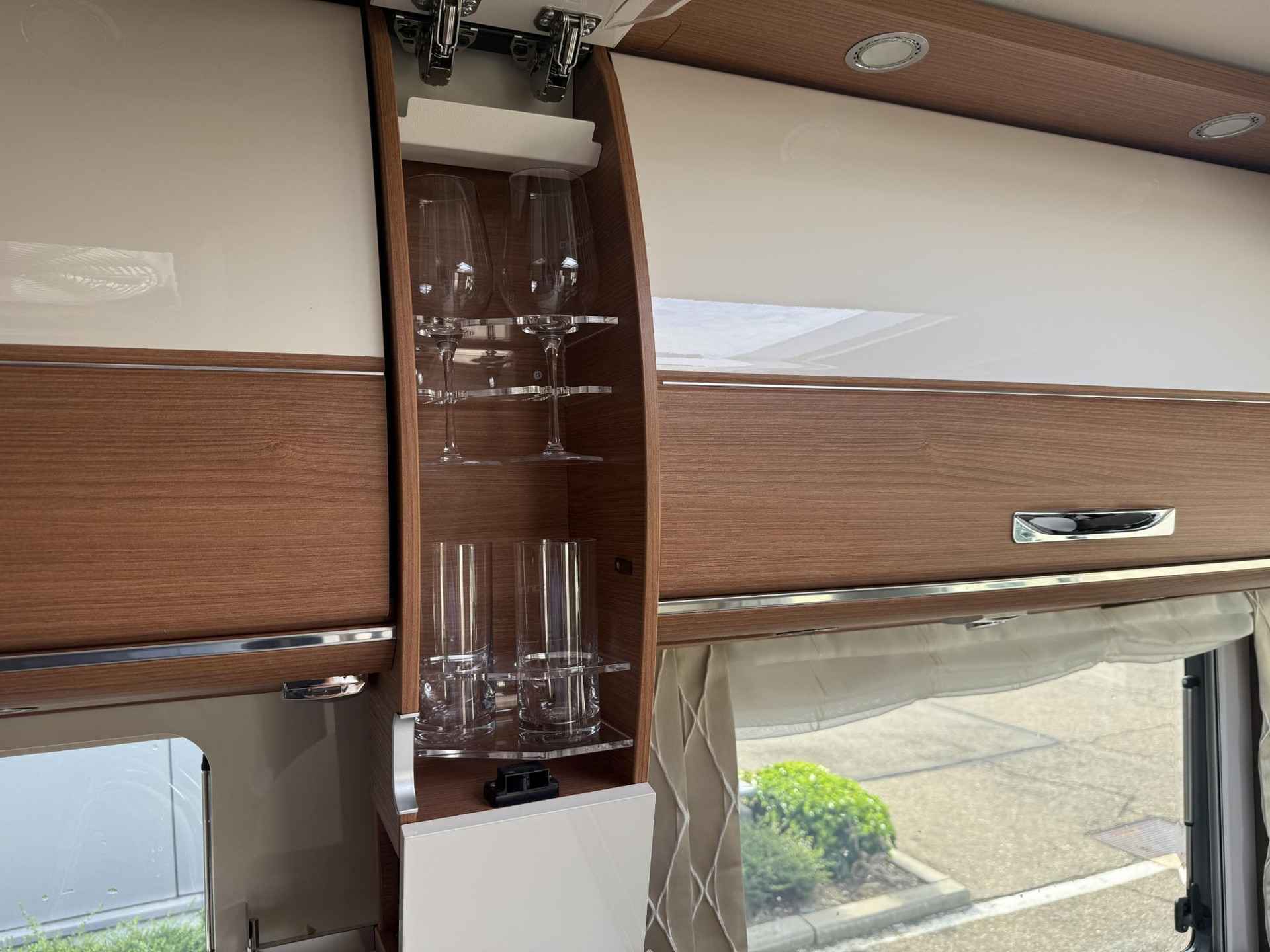 Design-barkast met glashouder en glas-set boven keuken