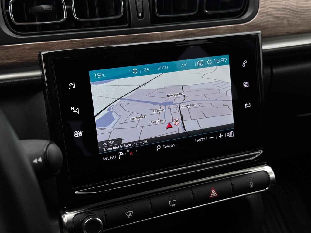 De conditie van deze auto is 24/7 inzichtelijk dankzij Connected Services. Het navigatiesysteem zorgt ervoor dat u altijd de juiste en snelste route vindt. Deze Citroën C3 is voorzien van sensoren aan de achterzijde om een achteropkomend verkeer waarschuwing te geven als de afstand tussen u en een achterligger te klein is. U verwacht natuurlijk automatische airconditioning in deze auto, en die is er dan ook. Via de schakelmogelijkheden op het stuur is de audiobediening veilig en eenvoudig. De Citroën is standaard voorzien van: DAB ontvangst, parkeersensoren achter, regensensor, cruise control, automatisch dimmende binnenspiegel en centrale deurvergrendeling met afstandsbediening.