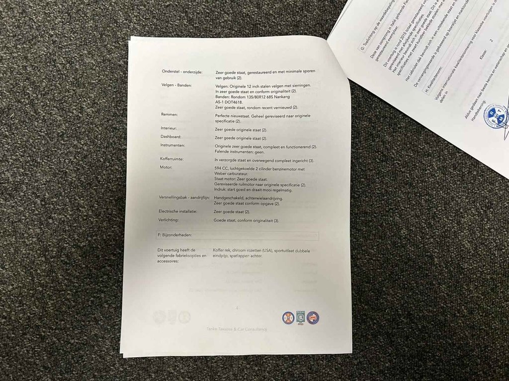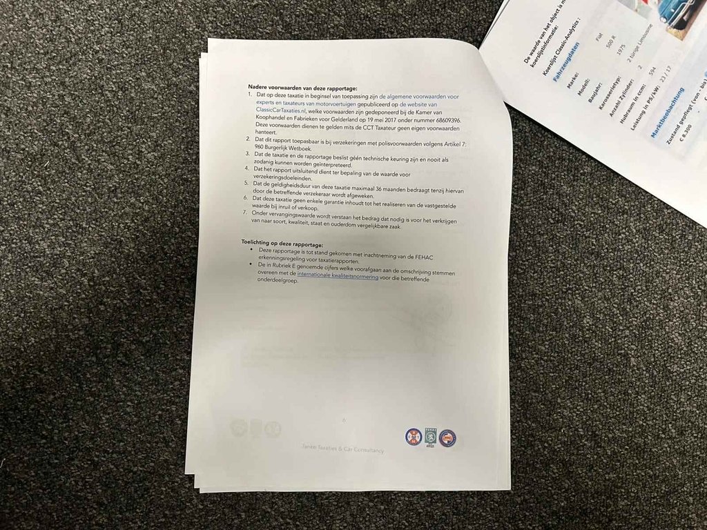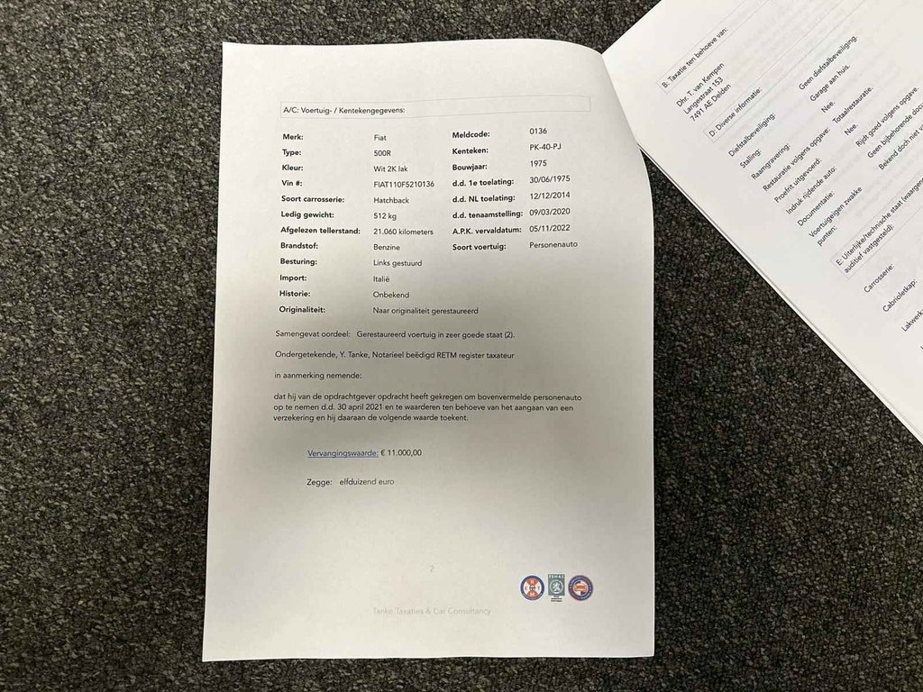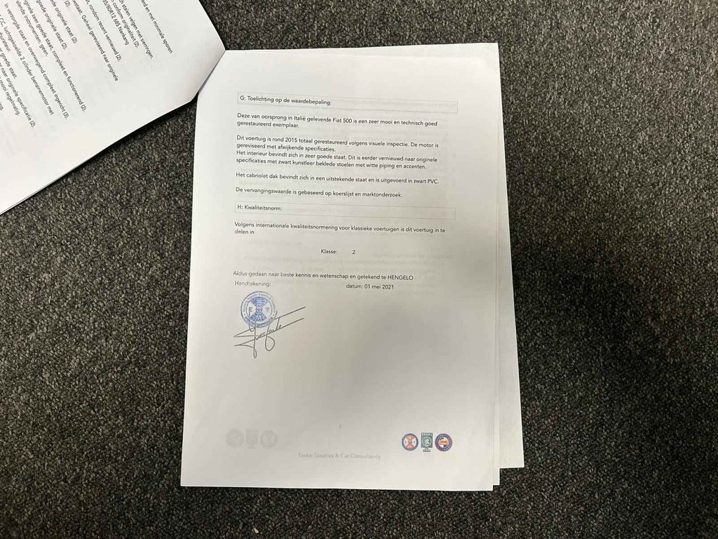 Deze Fiat 500 uit 1975 is een charmante en tijdloze klassieker met een herkenbare uitstraling. Een auto die niet alleen leuk is om te zien, maar ook veel rijplezier geeft. De auto verkeert in zeer nette staat en is duidelijk met zorg behandeld. In 2015 is hij compleet gerestaureerd, wat terug te zien is in de verzorgde staat van zowel het interieur als het exterieur. Bij de auto zit een taxatierapport (zie foto's), wat hem extra interessant maakt voor liefhebbers en verzamelaars. Een mooie kans om een goed onderhouden en nette Fiat 500 te bezitten.