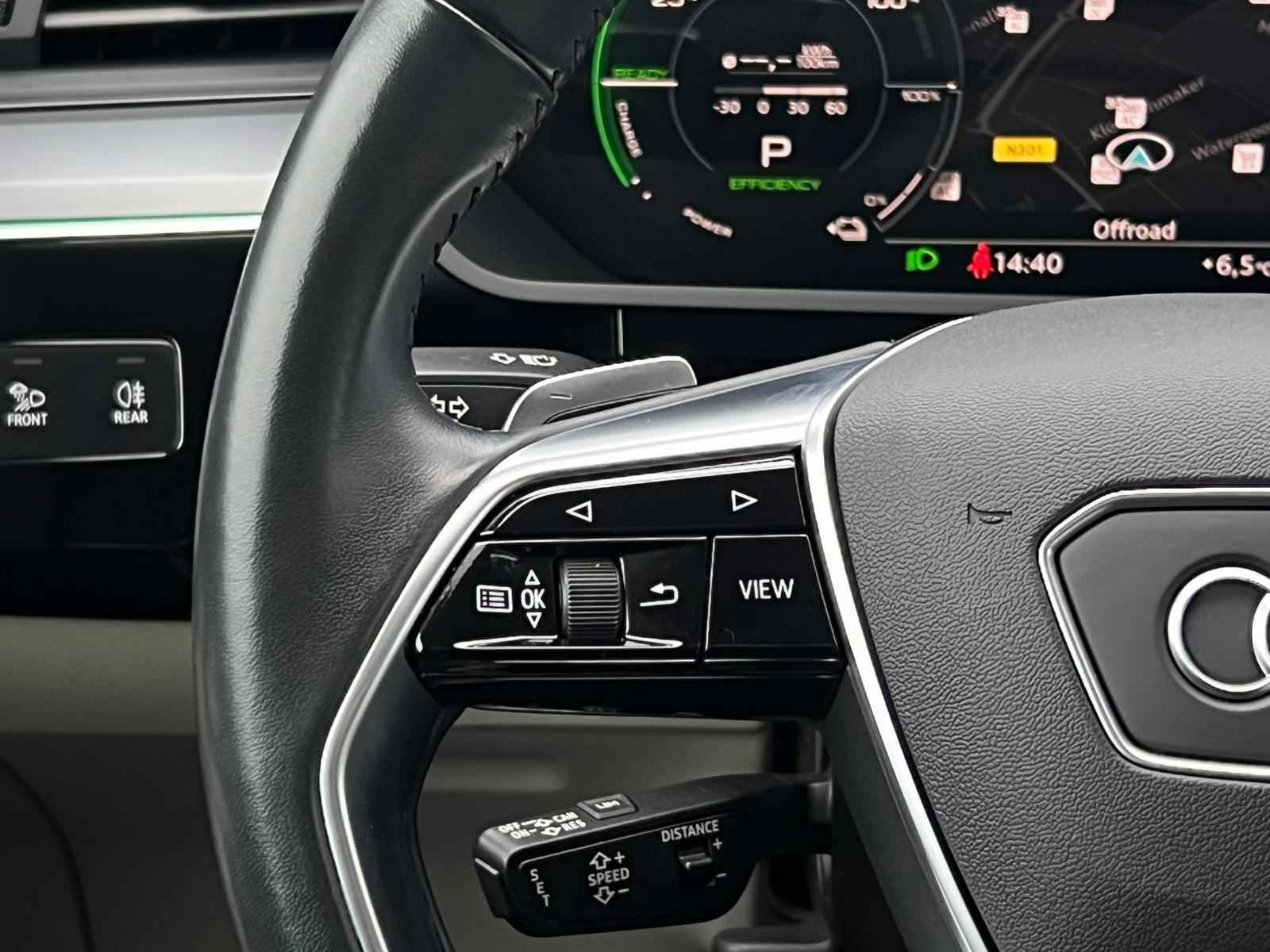 U voelt de onbeperkte kracht van elektrische aandrijving, elke keer als u op weg gaat met deze Audi e-tron. Het is een auto uit 2020, hij heeft 119481 kilometer gelopen. Schoon, stil en fiscaal vriendelijk: met de elektromotor is het zuinig zoeven! De elegante lijnvoering wordt versterkt door subtiele S-Line styling details. De krachtige motor geeft deze Audi uitstekende prestaties. Een fraai lederen interieur, dat in daglicht baadt dankzij het elektrisch bediende glazen panorama dak. En voor 'handsfree' in- en uitladen vindt u aan de achterzijde de elektrisch bedienbare achterklep. Laat de kou maar komen! U zit altijd goed met de heerlijke stoelverwarming. Ribbels en hobbels in de weg worden royaal gladgestreken door de aanwezige luchtvering. Tot de voorzieningen van deze auto behoren 20 inch lichtmetalen velgen, LED koplampen, adaptief dempingsysteem, warmtewerend glas, in delen neerklapbare achterbank en LED-achterlichten.
