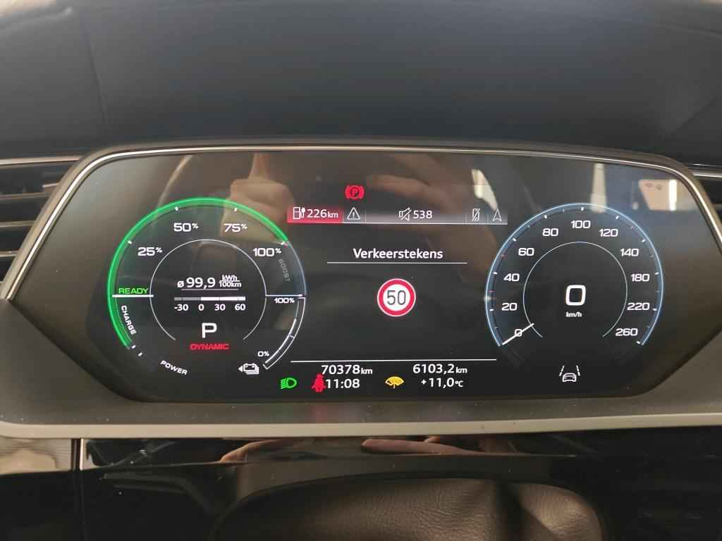 Nooit meer tanken. Een laadkabel volstaat om het accupakket van deze Audi e-tron op te laden. U hoort slechts het lichte gezoem van de elektromotor tijdens het rijden. Perfecte rij-ervaring? Dat is voor een groot deel te danken aan het gemak en de eigenschappen van de luchtvering. Niets geeft meer gevoel van luxe en comfort dan een lederen interieur. Ook dat is hier meegeleverd In de verwarmbare voorstoelen zitten is elke keer een welkom gevoel. Het daglicht valt in overvloed via het elektrisch bediende panoramadak op het fraaie interieur. De elektrische achterklep opent met een druk op de knop, zodat u gemakkelijk toegang heeft tot de bagageruimte. Tot de voorzieningen van deze auto behoren 21 inch lichtmetalen velgen, LED koplampen, adaptief dempingsysteem, warmtewerend glas, in delen neerklapbare achterbank en LED-achterlichten.