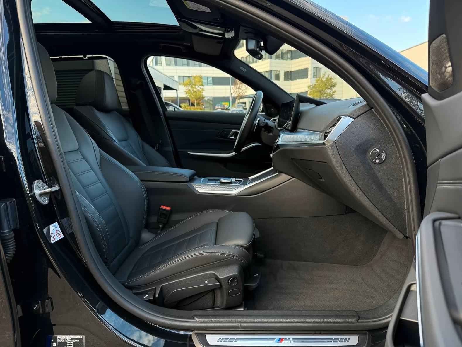Schitterend uitgevoerde BMW 320d Touring xDrive M-SPORT van 09-2023 met slechts 35.498km gereden (1e Eig - Unfallfrei) in het Saphire Schwarz Metallic met een Schwarz Vol-Leder M-SPORT Interieur (Sportstoelen) die o.a. is voorzien van: Alarmsysteem, Elektrisch inklapbare buitenspiegels, Auto Hold, Automatisch dimmende binnen- & buitenspiegels, Boordcomputer, Parkeerhulp: voor en achter PDC incl. • Achteruitrijcamera, Intelligente Personal Assistant, electr. uitklapbare Trekhaak, Elektrische ramen voor en achter, Dynamische stabiliteitsregeling (DSC), Grootlicht-assistent, Privacy Glas vanaf de B-Style, Automatische klimaatregeling met 3 zones en automatische luchtrecirculatie, Automatische klimaatregeling achter, Adaptieve led-koplampen, Lederen Multifunctioneel stuurwiel met Schakelpaddles, Navigatie Professional, BMW Breedbeelddisplay, Mistlampen, Parkeer-assistent, Licht- & Regensensor, Bandenspanningscontrolesysteem (TPMS), Variabele sportbesturing, Spraakbediening, Handsfree telefoonsysteem met USB-aansluiting, Adaptive Cruise Control, electr. bed. Glazen Panoramadak, electr. te bed. Achterklep, Centrale vergrendeling met afstandsbediening, Opbergpakket, ConnectedDrive Services Pakket, Hemelbekleding in antraciet, Individuele hoogglans Shadow Line uitgebreid, LED-mistlampen, M Aerodynamica Pakket, M Sportonderstel, 19-inch lichtmetalen velgen in 5 Dubbelspaaks design - bi-colour, Lederen interieur, Harman Kardon HiFi-systeem, Innovatie Pakket, Akoestisch glas, Middenarmsteun: voor en achter, Neerklapbare achterbank met Doorlaadsysteem, Stoelverwarming, Lendensteun, Driving Experience Control, ISOFIX kinderzitjebevestigingen, Hoofdairbag-systeem, Voorruit in Climate Comfort-uitvoering, Intelligent Emergency Call inclusief TeleServices, Zonneschermen voor de achterportierramen, Standverwarming, etc, etc....