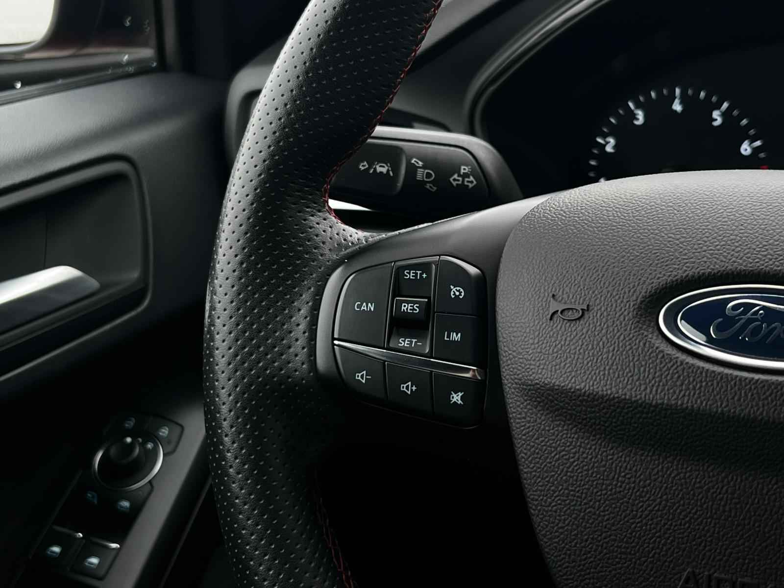 Kinderfietsje niet gezien bij het inparkeren? Dat gebeurt u nooit meer. Daar zorgt de achteruitrijcamera wel voor! De conditie van deze auto is 24/7 inzichtelijk dankzij Connected Services. Voor een veilige rit is het belangrijk dat uw handen het stuur vasthouden en uw ogen gefocust blijven op de weg; daarom kunt u het audiosysteem, met DAB-ontvangst en full map navigatiesysteem bedienen met het stuurwiel of via spraakbediening. De kans op een kop-staart botsing wordt sterk gereduceerd door het systeem van achteropkomend verkeer waarschuwing. Natuurlijk is een complete auto als deze ook voorzien van sensoren die de omgeving in de gaten houden. Deze Ford heeft niet alleen een automatisch inschakelbare verlichting aan boord, maar ook een regensensor. En dan is deze auto ook nog eens voorzien van WIFI-hotspot, cruise control, sportstuurwiel, keyless entry, airconditioning en automatisch dimmende binnenspiegel.