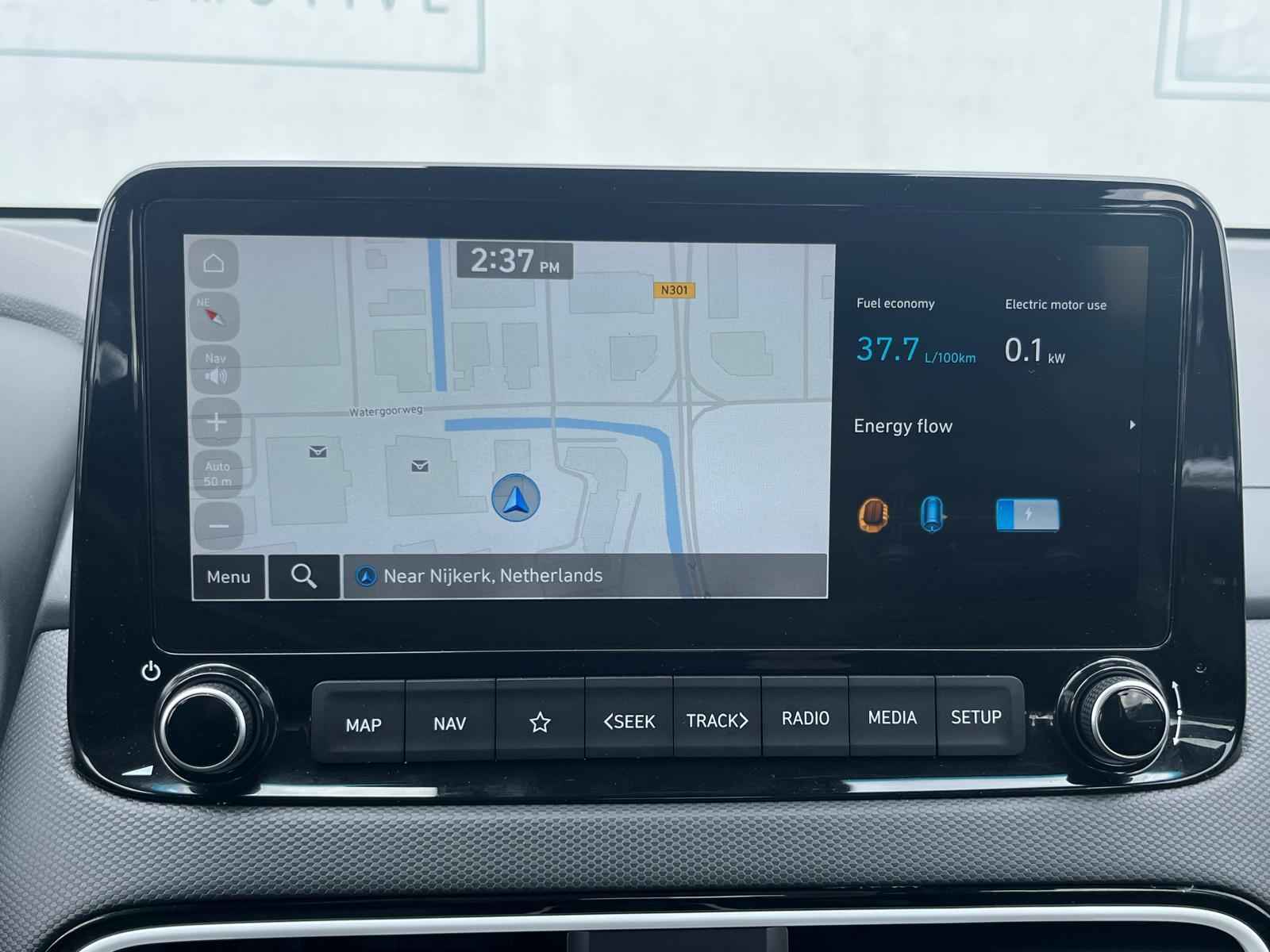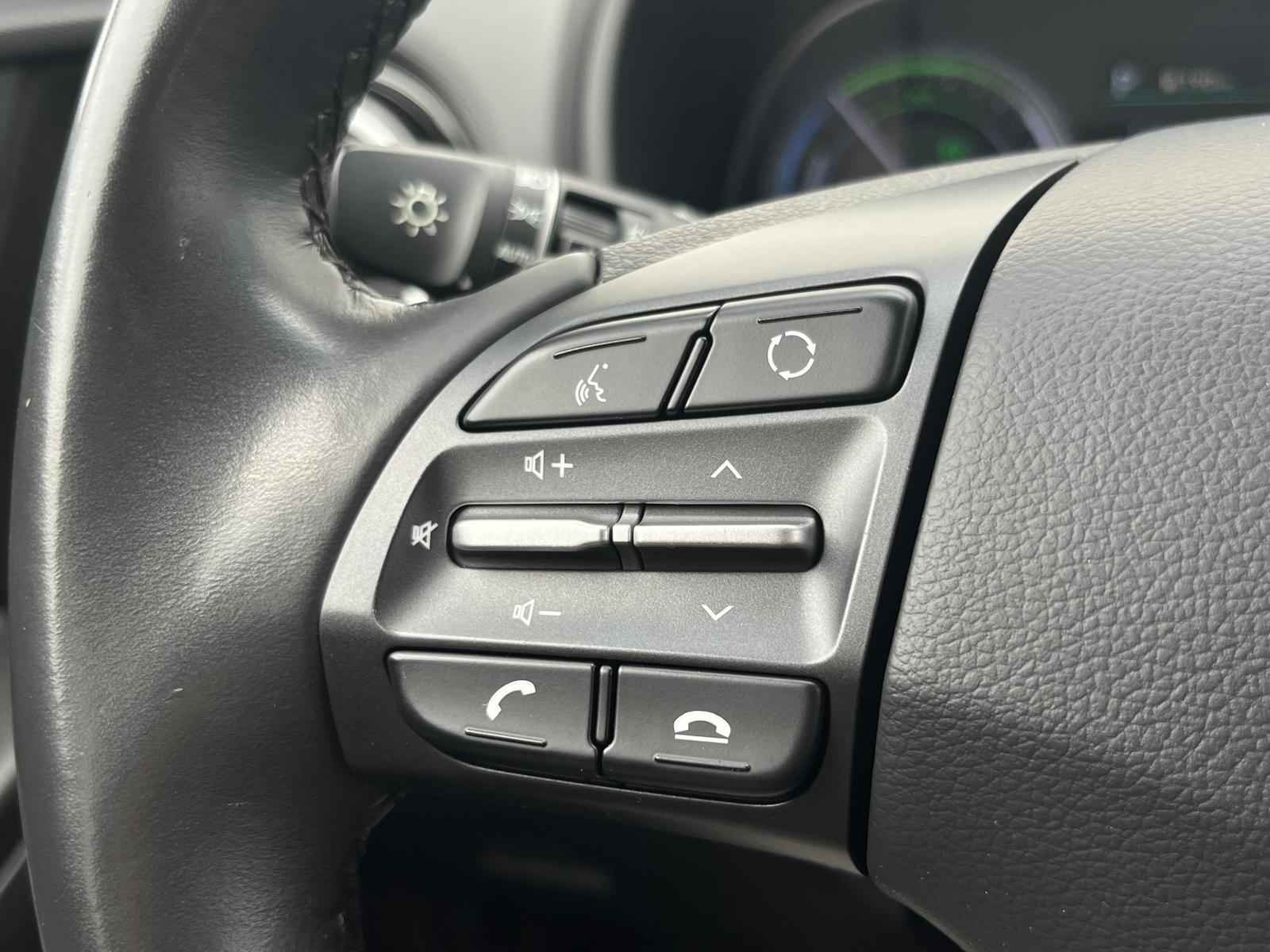 Nooit meer parkeerschade dankzij de achteruitrijcamera. Adaptive cruise control houdt de ingestelde snelheid vast en houdt afstand tot het voertuig voor u. De bediening van het audio-installatiesysteem gebeurt met knoppen op het stuur en als u wilt zelfs met uw stem. De audio is overigens voorzien van DAB-radio voor een altijd heldere ontvangst. Met de keyless entry ontgrendelt deze Hyundai Kona zich automatisch als u het portier wilt openen. Lekker makkelijk: de keyless start. Geen gedoe met een contactsleutel. Uw auto herkent u aan de elektronische sleutel die u meedraagt. Even op de startknop drukken en rijden maar! De uitrusting van deze Hyundai is met airconditioning, centrale deurvergrendeling met afstandsbediening, bagage afdekhoes, boordcomputer en verstelbaar stuur behoorlijk compleet.