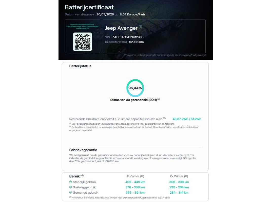 Met de Jeep Avenger kiest u voor het rijplezier van de toekomst. De volledig elektrische aandrijflijn zorgt voor krachtige prestaties en een sensationeel acceleratievermogen. Ervaar de kracht en stilte van de elektromotor tijdens het rijden. Stoelverwarming maakt deel uit van de rijke uitrusting van deze auto. Met een druk op de knop gaat de elektrische achterklep open. U wordt in deze auto ook getrakteerd op 18 inch lichtmetalen velgen, LED koplampen, extra getint glas, in delen neerklapbare achterbank en LED-achterlichten.