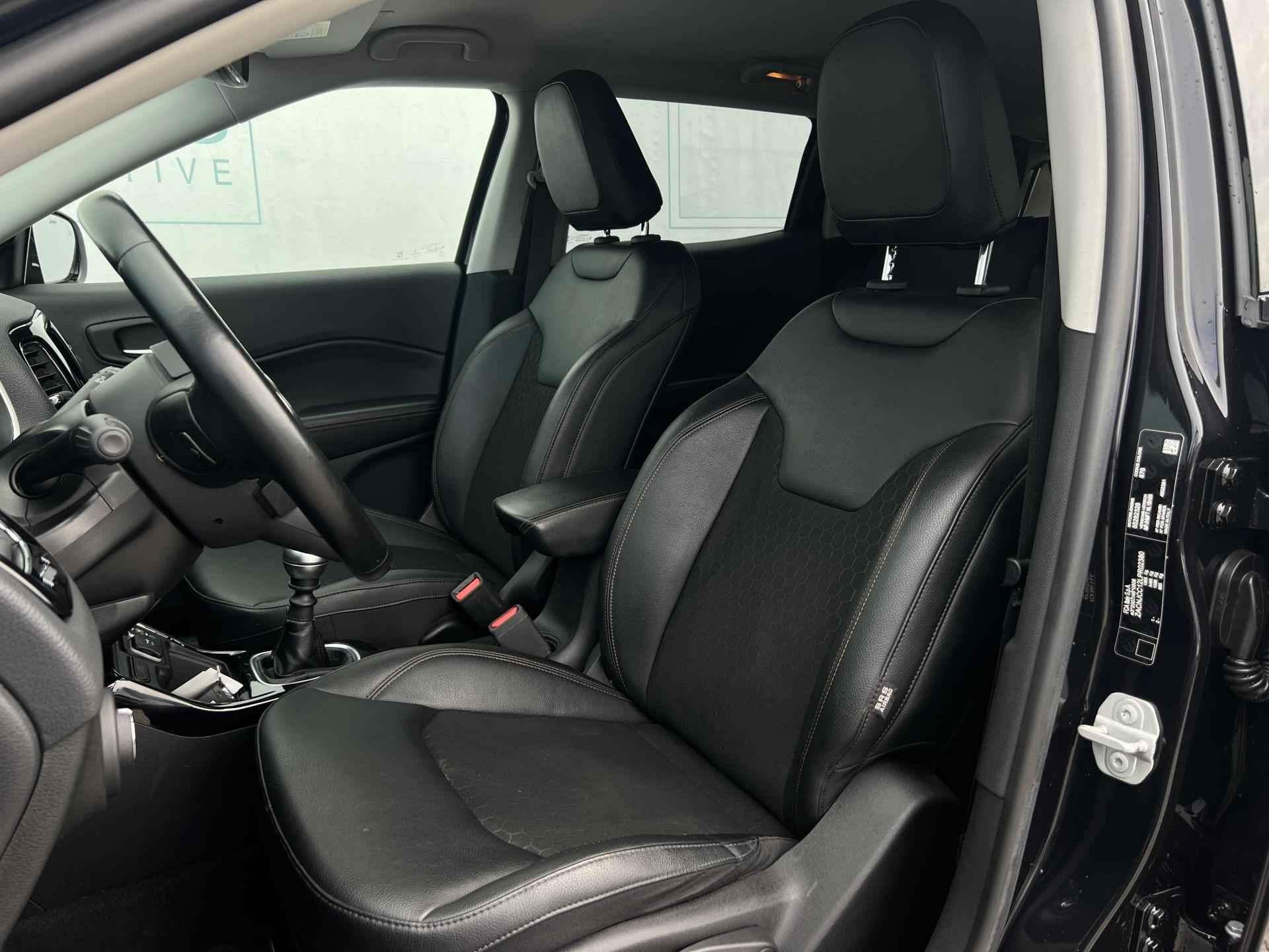 De krachtige lijnen van deze SUV springen direct in het oog. Dit is een Jeep Compass uit 2021 die 99032 kilometer heeft gelopen. Een benzinemotor en een handgeschakelde zesversnellingsbak zorgen dat u met deze SUV prima vooruitkomt. Het lederen interieur zorgt voor een klasse uitstraling. Xenonverlichting zorgt in het donker voor beter zicht. Bij de rijke uitrusting horen ook 19 inch lichtmetalen velgen, halflederen bekleding, in hoogte verstelbare passagiersstoel, donker getint glas achter, in delen neerklapbare achterbank en LED-achterlichten.