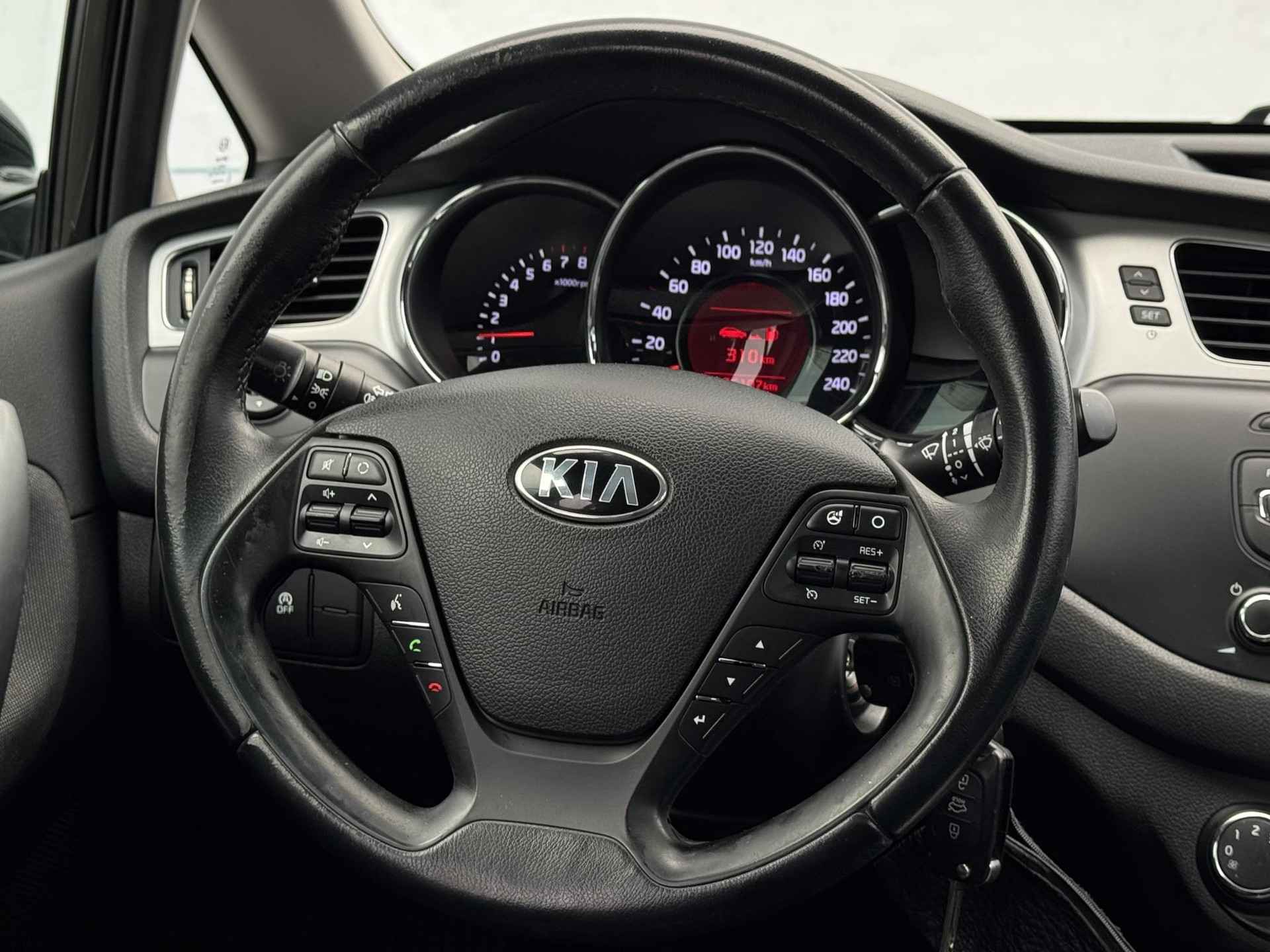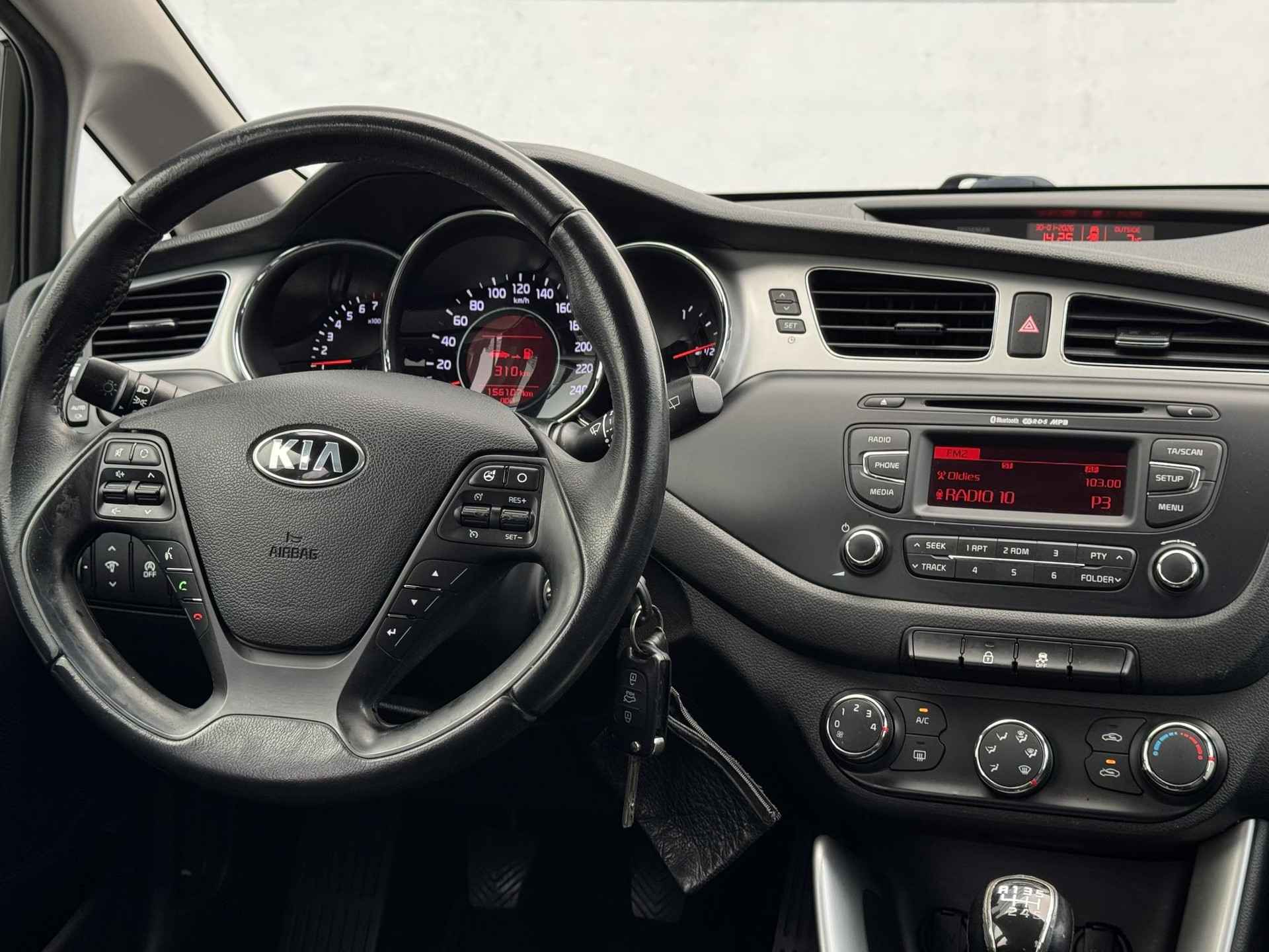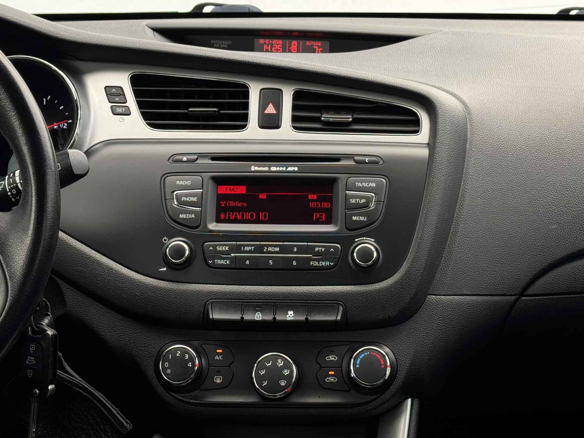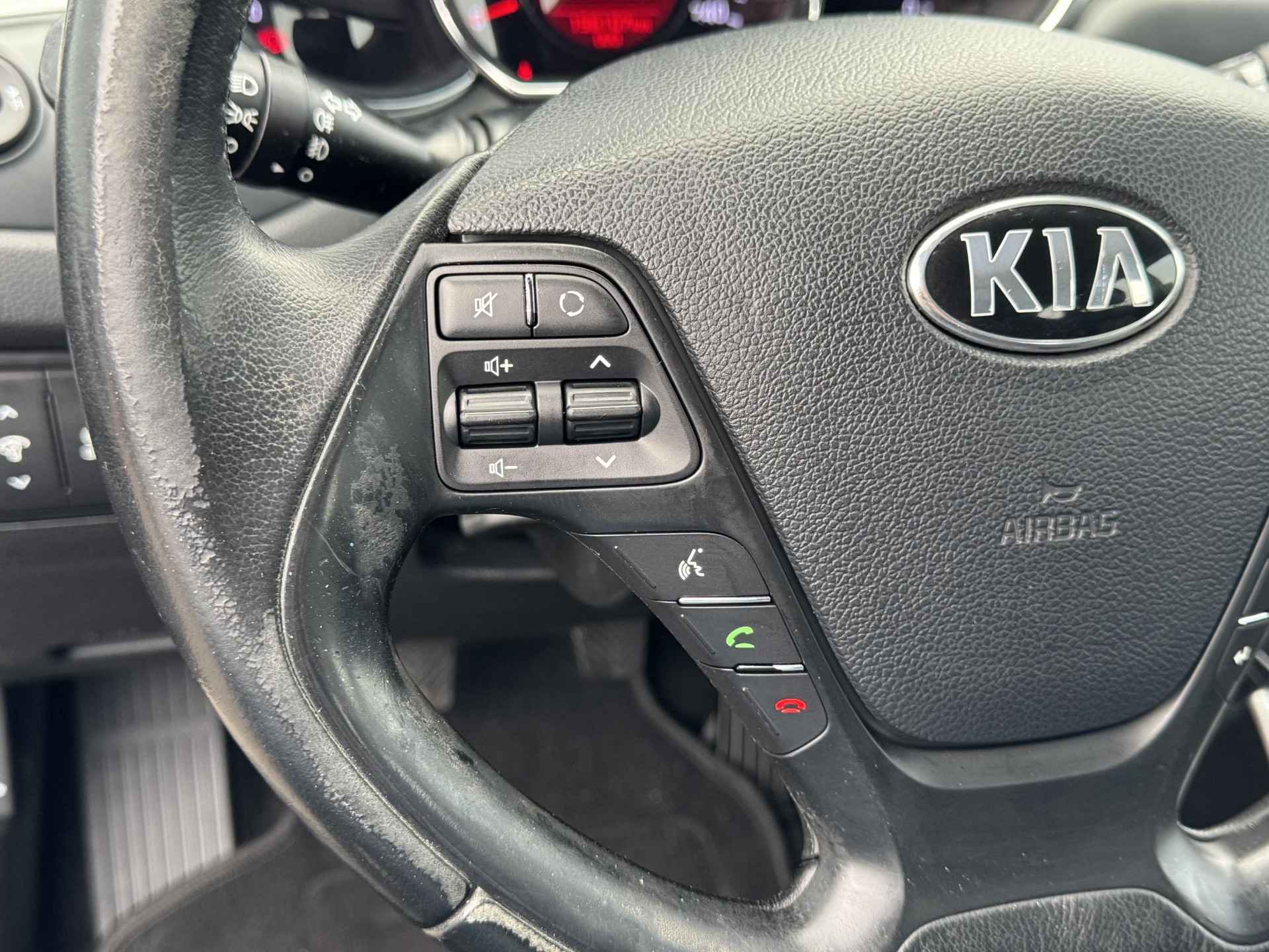 Het audiosysteem bedient u veilig met knoppen op het stuur. Ook op de korte stukken is de cruise control een uitkomst. Kijk maar bij de benzinepomp! Natuurlijk is er in deze auto airconditioning aanwezig. De Kia is standaard voorzien van: lederen stuur en versnellingspook en centrale deurvergrendeling met afstandsbediening.