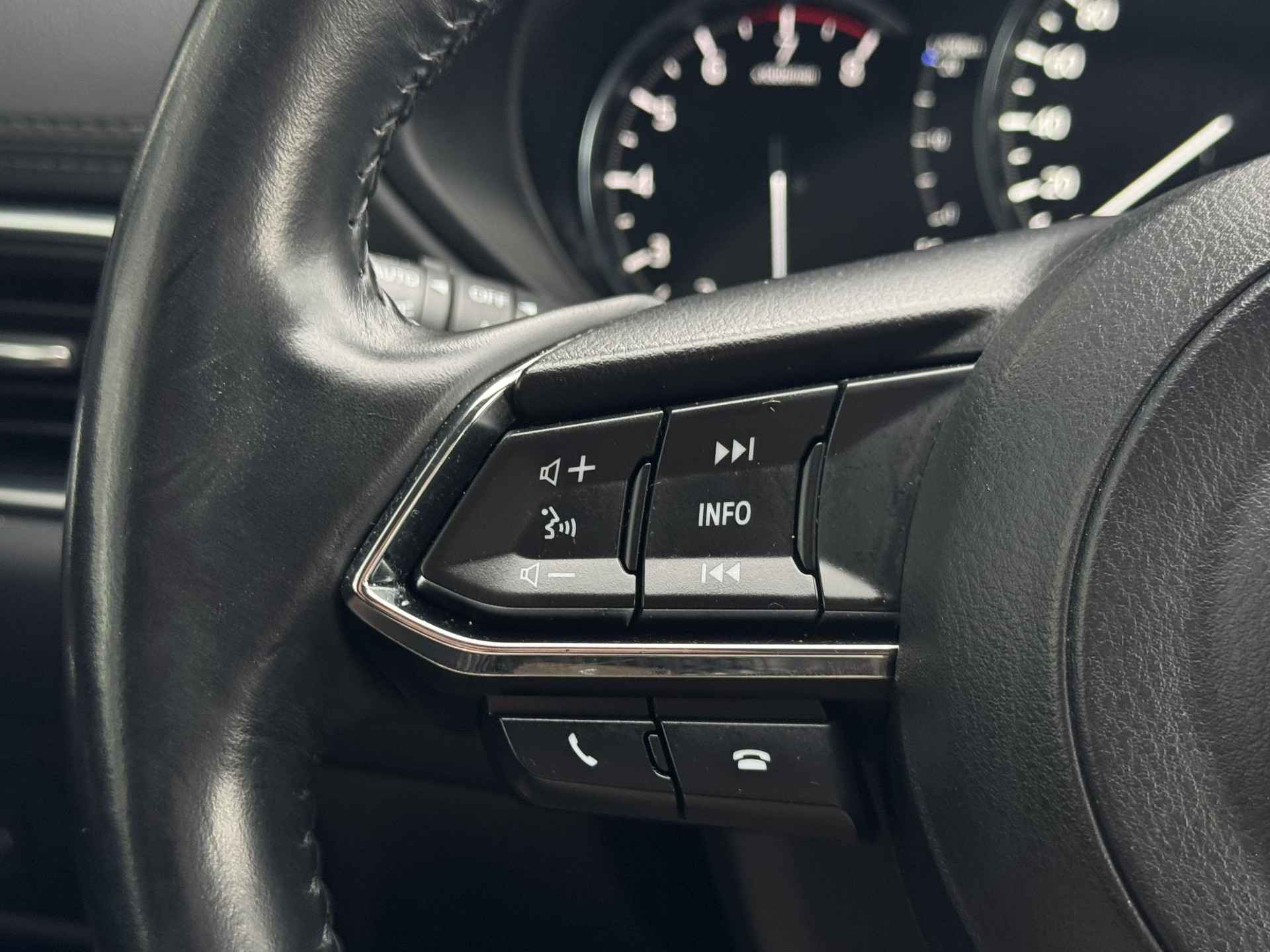 De functie van de 360 graden camera in deze auto is om u een totaaloverzicht van de omgeving te geven, ongeacht hoe smal de straat of parkeerplek is. Adaptive cruise control houdt de ingestelde snelheid vast en houdt afstand tot het voertuig voor u. De auto is voorzien van een trekhaak en is een uitstekende caravantrekker. Muziek luisteren wordt genieten met het high performance audiosysteem. De achteropkomend verkeer waarschuwing is een mooie veiligheidsoptie, die middels sensoren in de gaten houdt wat er onderweg achter u gebeurt. Met dashboard met spraakbediening, full map navigatiesysteem, electronic climate control, DAB ontvangst, regensensor en keyless entry is deze Mazda helemaal compleet.