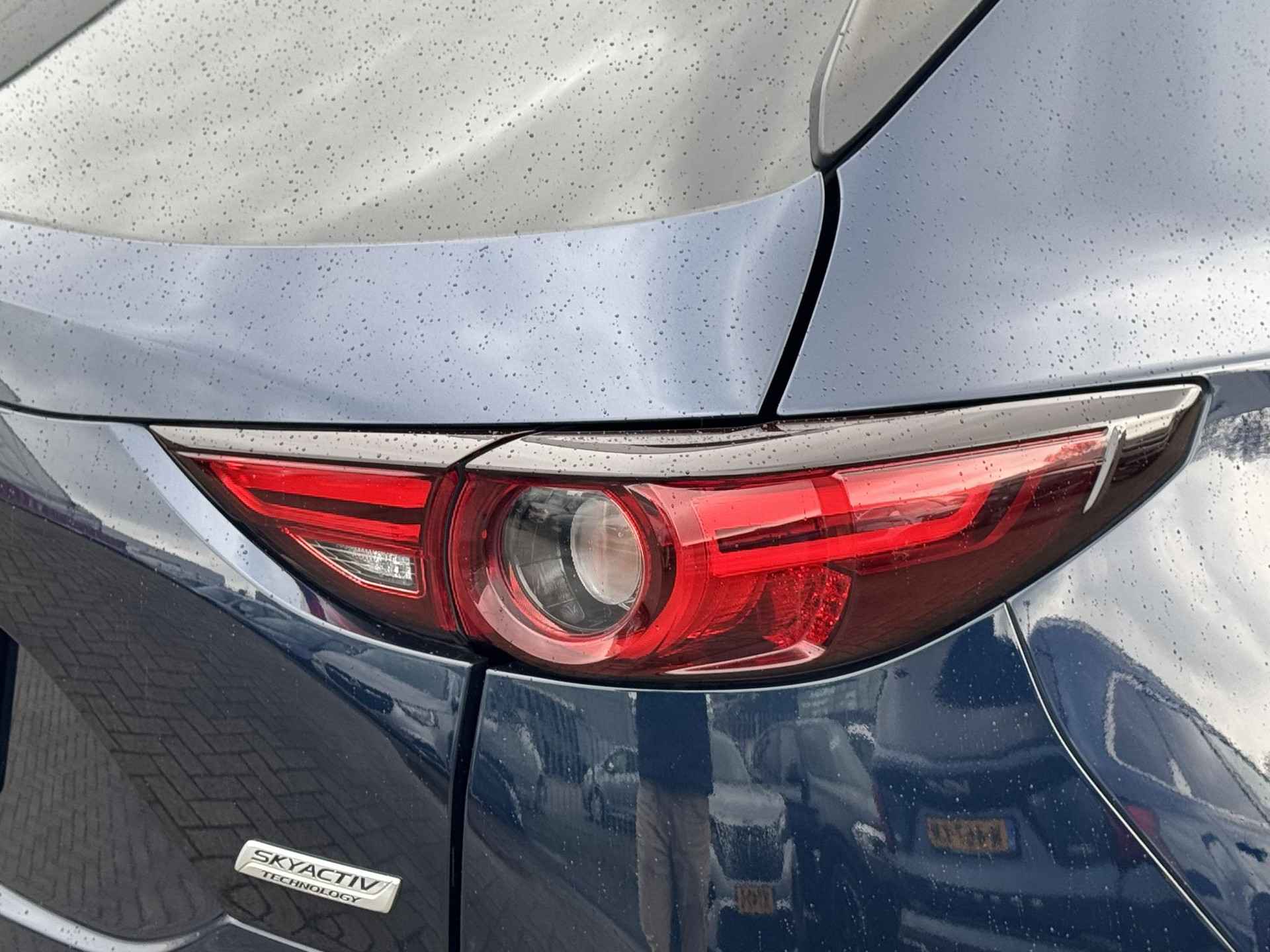 Met zijn ruimte en zijn prestaties is dit de auto die bij u past. Deze Mazda CX-5 heeft 146756 kilometer gelopen, hij is van het bouwjaar 2019. Met zijn benzinemotor en automatische transmissie is dit een prima auto voor nog vele kilometers. De hoogwaardige, lederen bekleding benadrukt de kwaliteit van deze Mazda. In dit voertuig hoeft u nooit meer kou te lijden dankzij functies als stoelverwarming en verwarmbare achterbank, evenals een verwarmbaar stuur. De bagageruimte is toegankelijk via een comfortverhogende elektrische achterklep. Tot de uitrusting van deze Mazda behoren ook 19 inch lichtmetalen velgen, LED koplampen, dakspoiler, extra getint glas, in delen neerklapbare achterbank en LED-achterlichten.