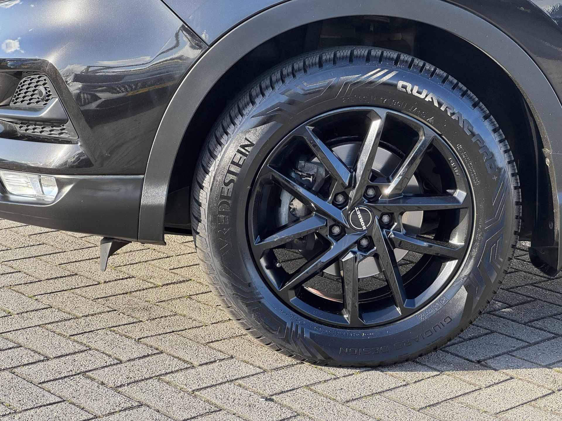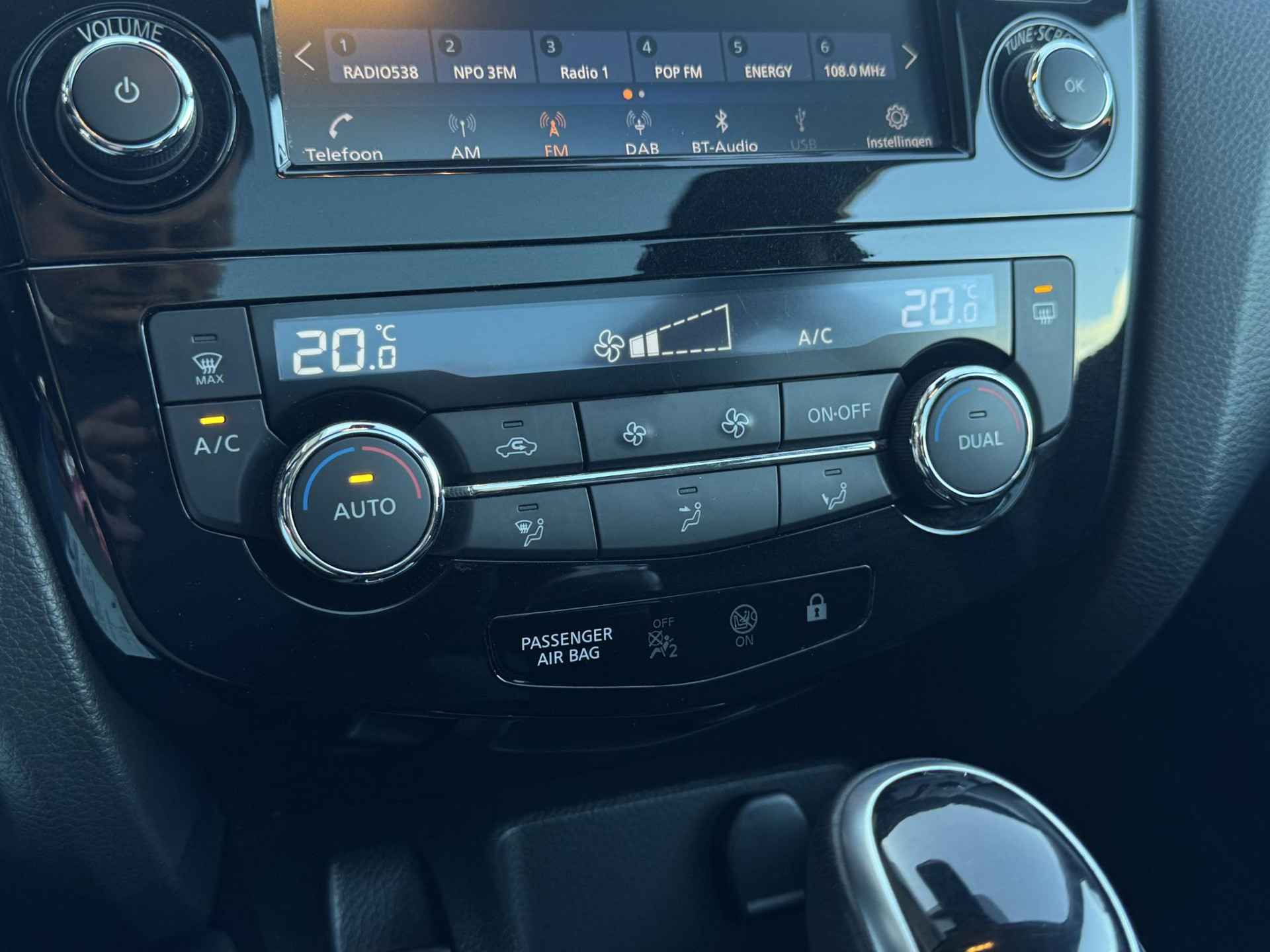 Zijn dynamische uiterlijk maakt al direct duidelijk wat voor rijervaring u van deze Nissan Qashqai mag verwachten: pure sportiviteit. Deze auto is uitgerust met een viercilinder benzinemotor en een automatische transmissie. De verwarmbare voorstoelen benadrukken nog maar eens dat we hier te maken hebben met een regelrechte verwenauto voor bestuurder en bijrijder. Zicht, licht en toch dicht! Een geweldige rijervaring met het glazen panoramadak. Ook 17 inch lichtmetalen velgen, LED koplampen, extra getint glas, in delen neerklapbare achterbank, LED-achterlichten en verstelbare lendensteunen zijn aan boord.