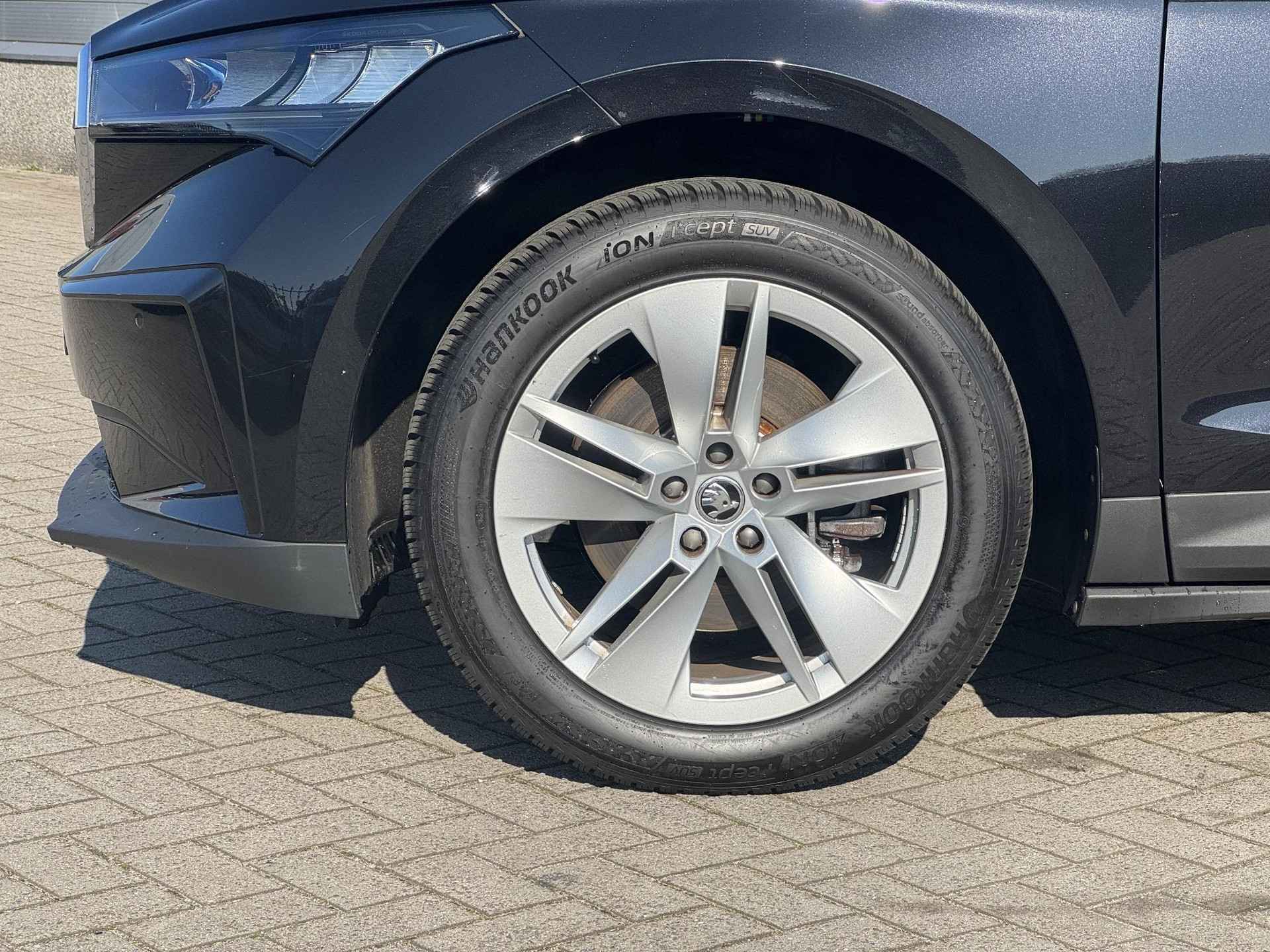 Hightech elektronica en emissievrij rijden komen samen in de Skoda Enyaq iV. Deze auto biedt een onvergelijkbare rijbeleving dankzij de volledig elektrische aandrijflijn. Geruisloos genieten tegen lage kosten? Dan is deze elektromotor iets voor u! Laat de kou maar komen! U zit altijd goed met de heerlijke stoelverwarming. Het glazen panoramadak biedt u een breed zicht op de omgeving. Tot de uitrusting van deze Skoda behoren ook 19 inch lichtmetalen velgen, LED koplampen, extra getint glas, in delen neerklapbare achterbank, LED-achterlichten en verstelbare lendensteunen.