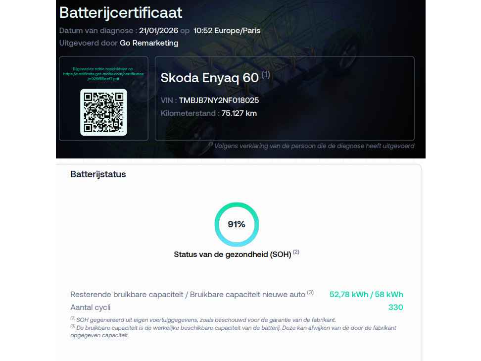 Zoals u mag verwachten van deze Skoda Enyaq iV is hij uitgerust met een reeks aan actieve veiligheidssystemen. Ongemerkt buiten de rijstrook raken? Nee hoor, het Lane-keeping systeem waarschuwt en corrigeert. Forward collision warning waarschuwt bij een dreigende aanrijding en vermindert de gevolgen van een ongeval. Bij concentratieverlies van de bestuurder geeft vermoeidheidsherkenning automatisch een waarschuwingssignaal. Verder is deze auto uitgerust met autonoom remsysteem en bandenspanningcontrolesysteem.