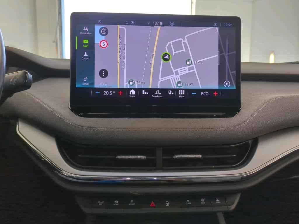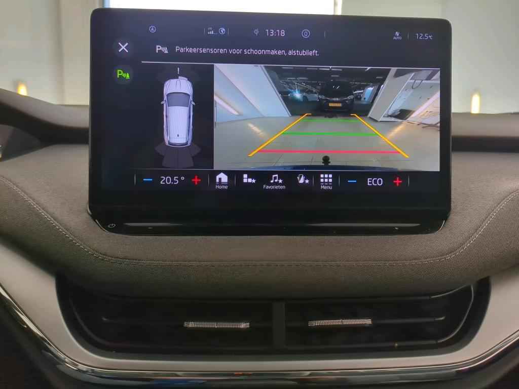 Het digitale dashboard rekent mee, denkt mee en rijdt mee. Alle info overzichtelijk in beeld, overal. Hoeveel ruimte heeft u nog bij het inparkeren? De achteruitrijcamera brengt helder in beeld wat zich achter de auto bevindt en geeft een geluidssignaal. Met adaptive cruise control houdt de auto zelfstandig afstand tot uw voorligger. Een veiligheidsverhogende optie waarmee u comfortabel onderweg bent. De ingebouwde file assistent is een echte helper als het vaststaat onderweg. Het systeem meet ruimte tot de auto vóór u permanent en activeert zelfs de remmen als uw voorligger stopt. Functies activeren en storingen opsporen? Bij deze auto gaat het eenvoudig via uw smartphone. Overal en altijd. Deze Skoda is voorzien van dashboard met spraakbediening, full map navigatiesysteem, electronic climate control, draadloos opladen, DAB ontvangst en regensensor.