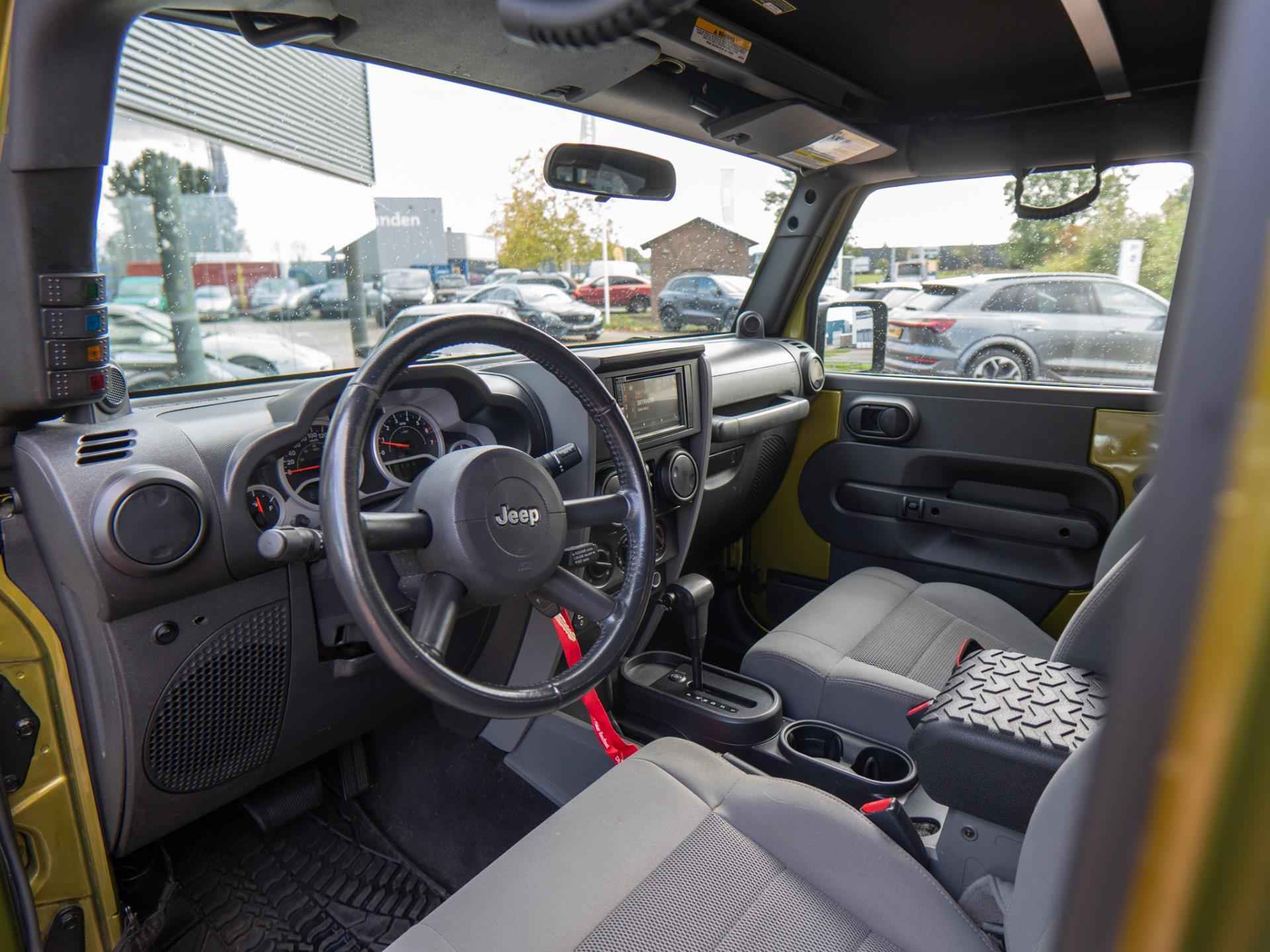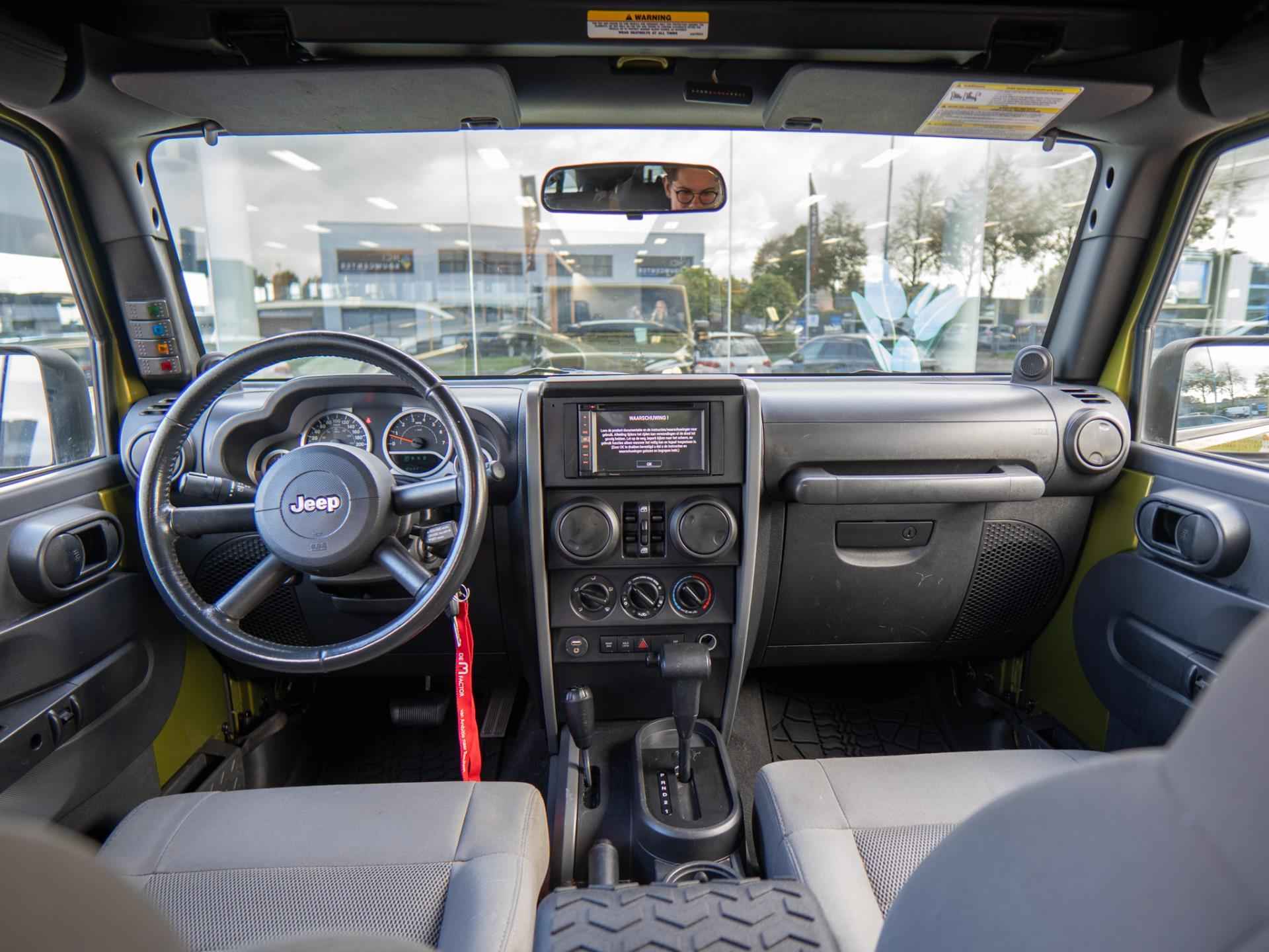 Het interieur biedt comfortabele zitplaatsen en een praktisch, overzichtelijk dashboard. Dankzij de krachtige 3.8-liter motor en de vierwielaandrijving is deze Wrangler zowel geschikt voor avontuurlijke off-road ritten als voor ontspannen ritten op de weg.