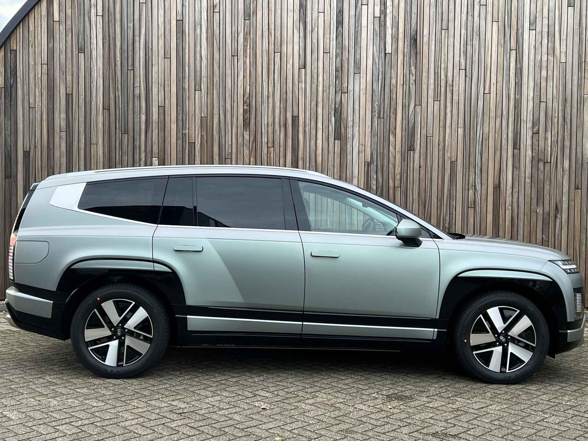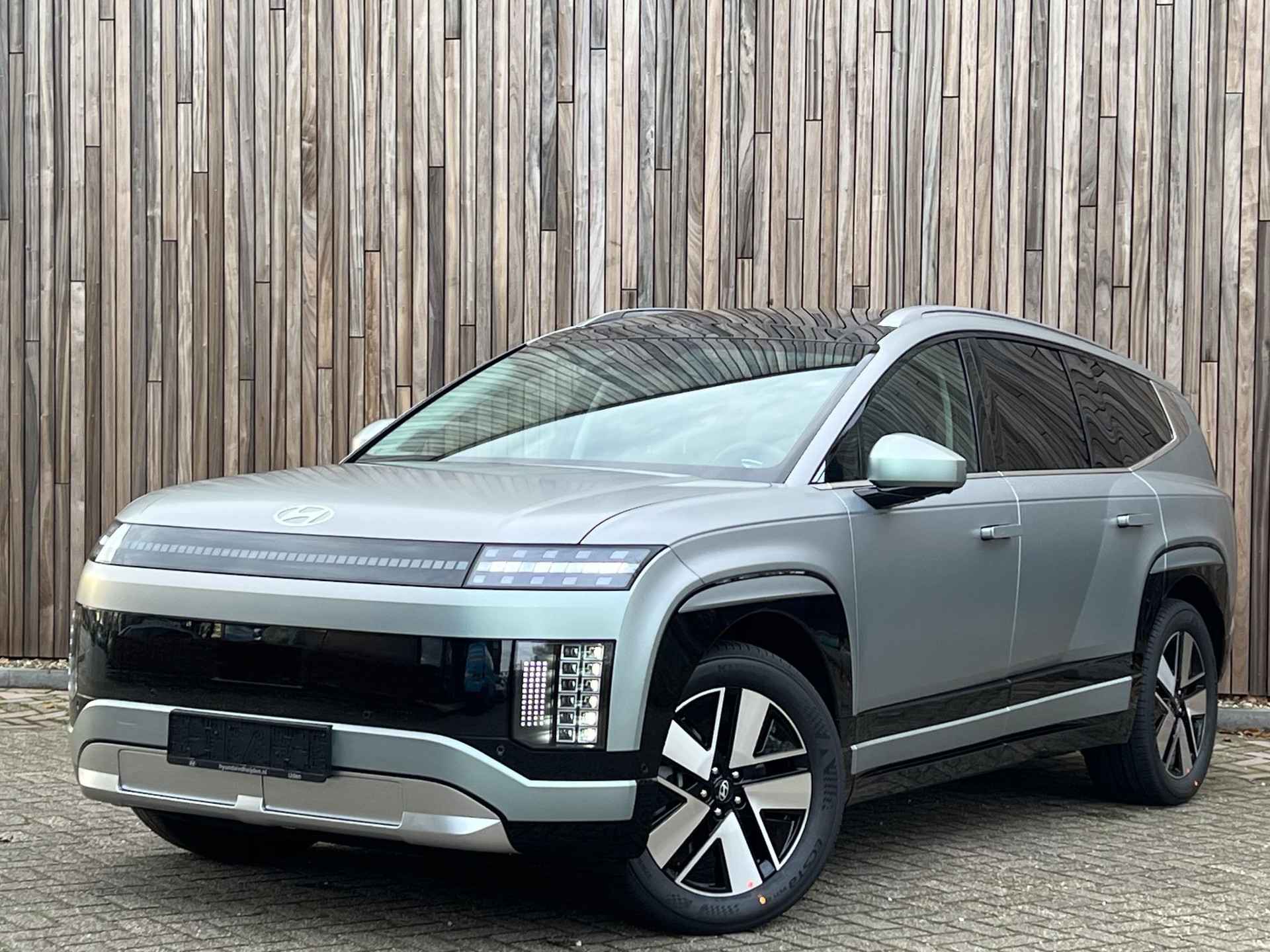 Hyundai IONIQ 9 Connect Plus 110 kWh AWD in de kleur Celadon Gray Matte. Zeer compleet uitgeruste elektrische zevenzitter met luxe interieur, geavanceerde veiligheidssystemen en toonaangevende ruimte en comfort. Hoge elektrische range, krachtige vierwielaandrijving en geschikt voor zowel lange reizen als dagelijks gebruik. Deze auto is nu zeer scherp geprijsd en komt zeer binnenkort binnen. Kan snel worden geleverd.
