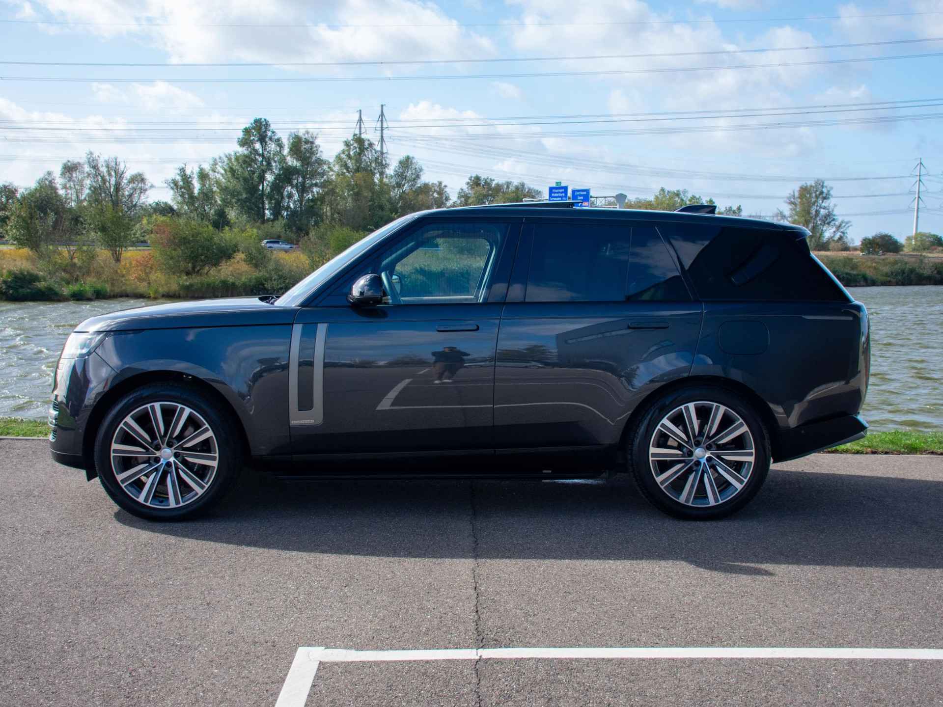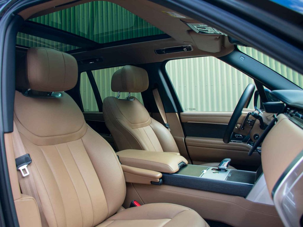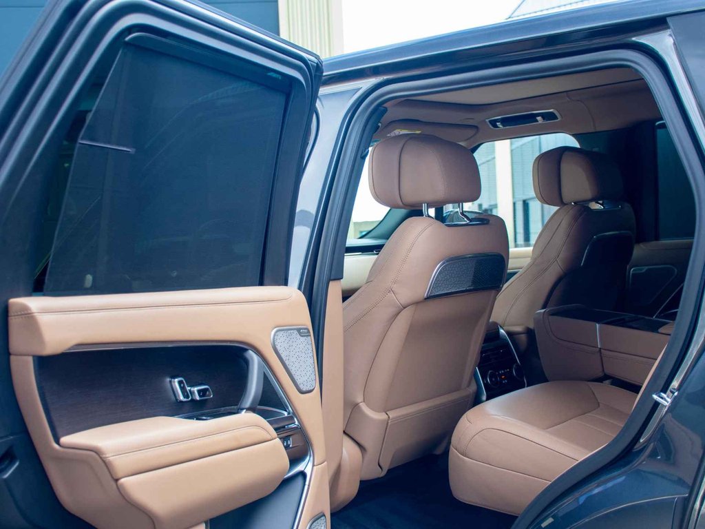 Deze Range Rover P550e Autobiography in de exclusieve kleur Carpathian Grey straalt ingetogen klasse en kracht uit. Met 550 pk uit een geavanceerde plug-in hybride aandrijflijn biedt hij indrukwekkende prestaties, stille elektrische ritten en ultiem rijcomfort.