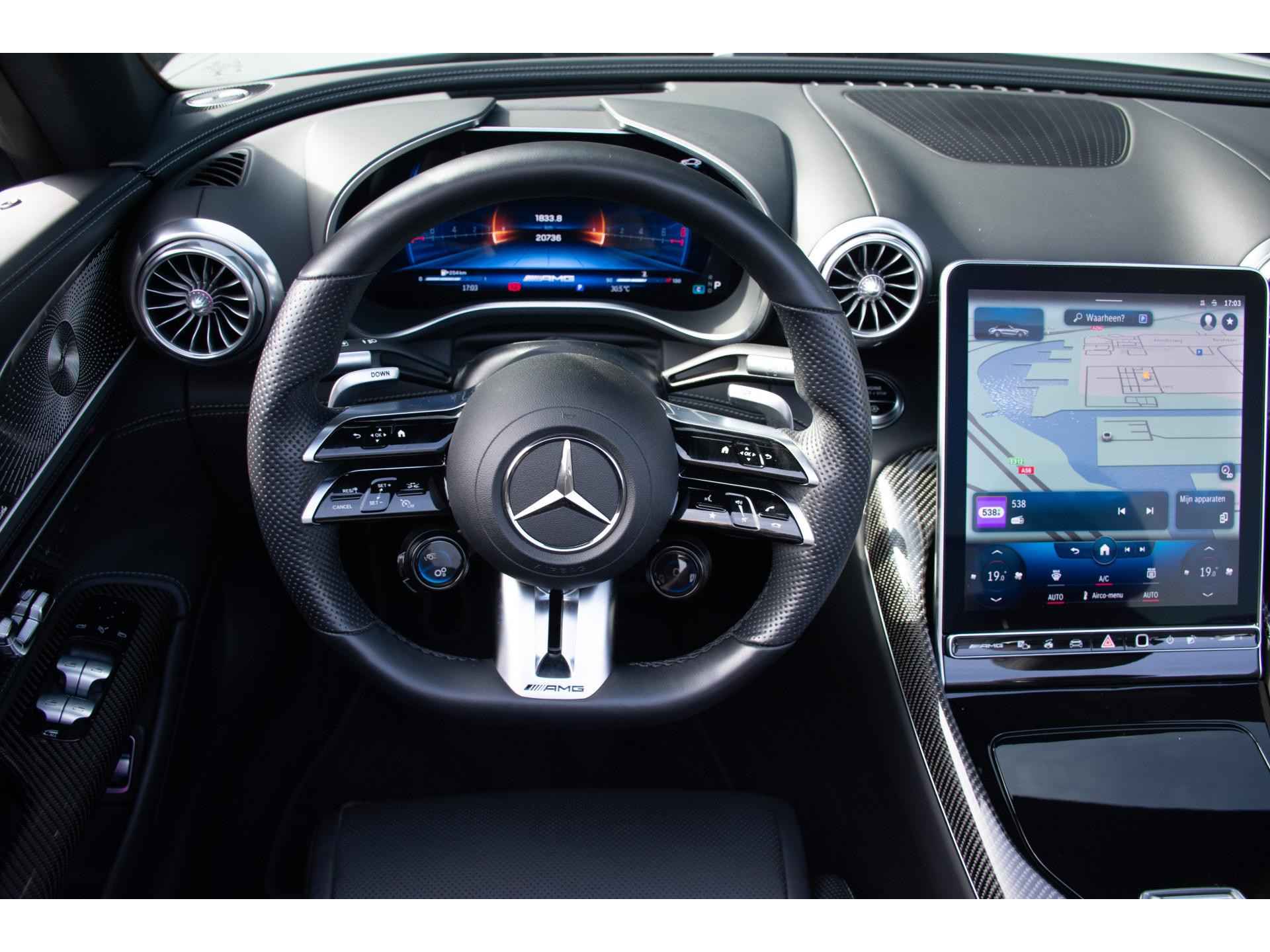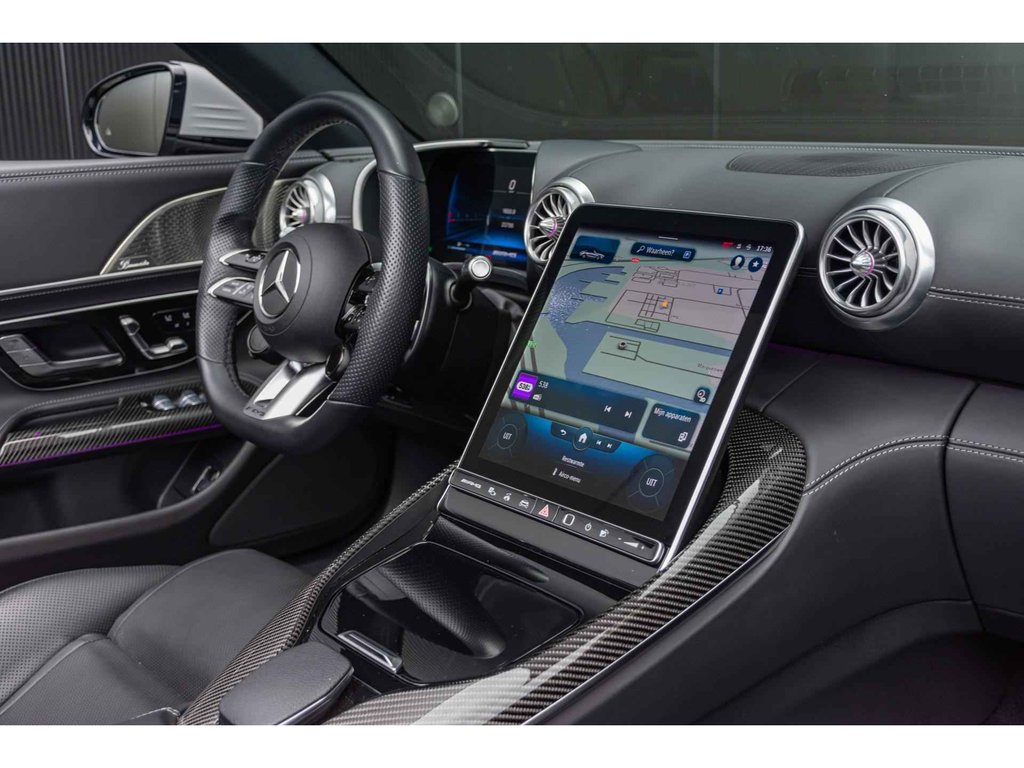 Met zijn opvouwbare softtop, strak gelijnde carrosserie en agressieve AMG-designaccenten straalt de SL 63 kracht en elegantie uit. Het interieur is een perfecte mix van high-performance materialen, digitale technologie en comfort op topniveau.