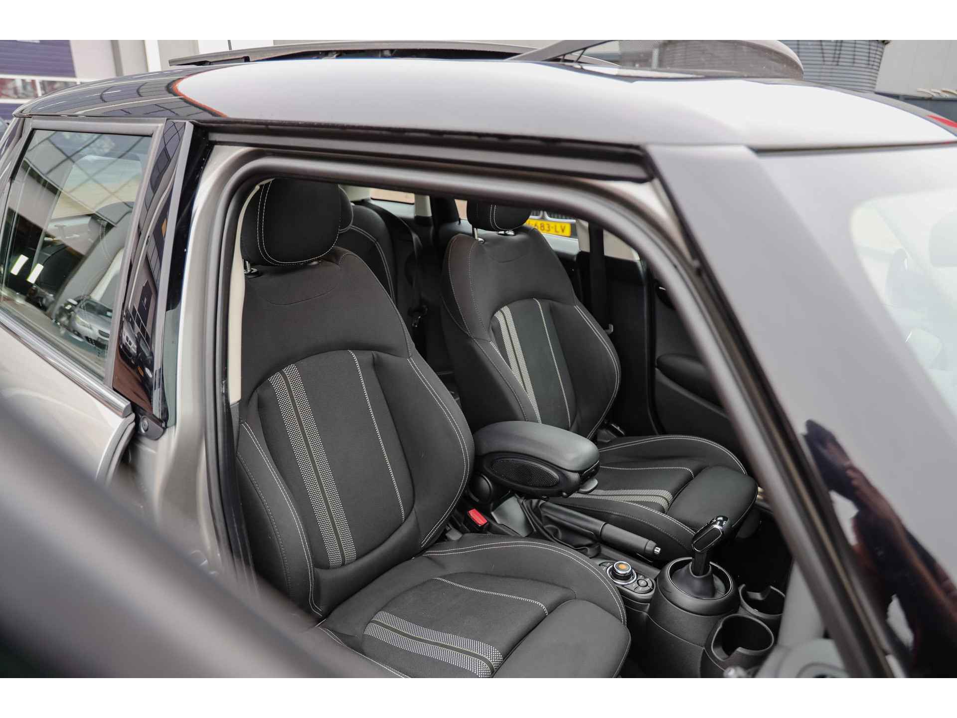 Wat een prachtige Mini Cooper S! Deze Mini is niet alleen sportief, maar ook stijlvol en bijzonder dankzij zijn unieke samenstelling. Uitgevoerd in het chique Melting Silver Metallic, gecombineerd met een zwart dak, zwarte spiegels en accenten en zilverkleurige lichtmetalen velgen. Een echte eyecatcher: sportief én elegant. Zelden zo te vinden!