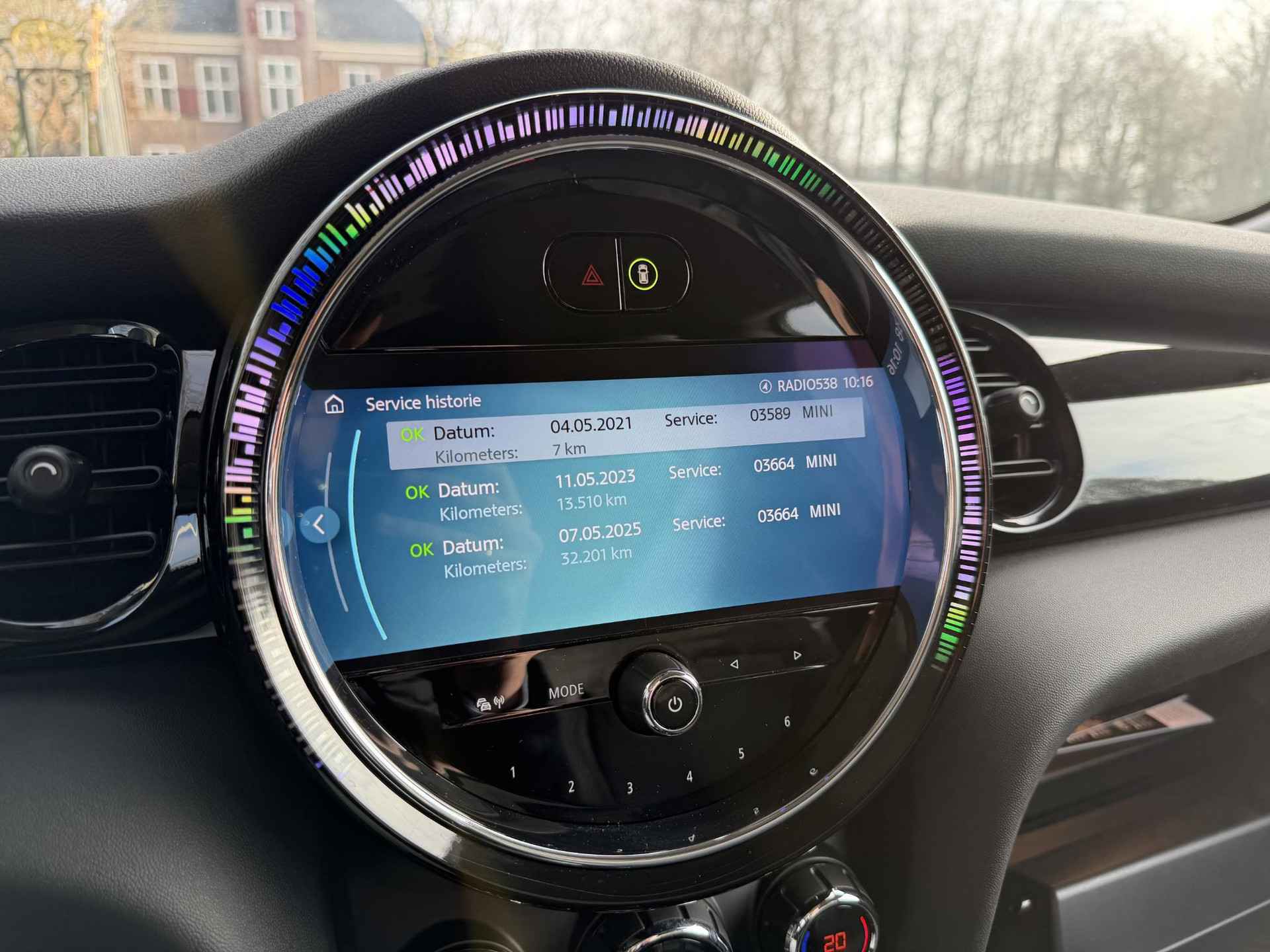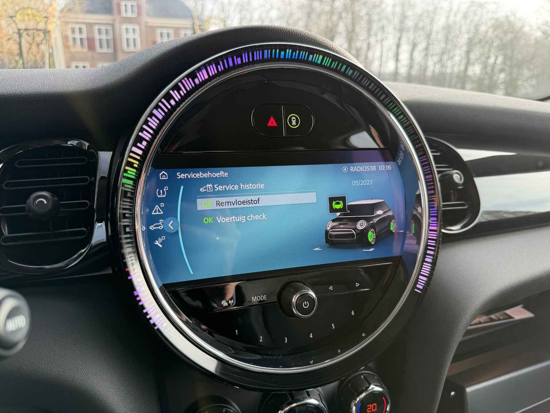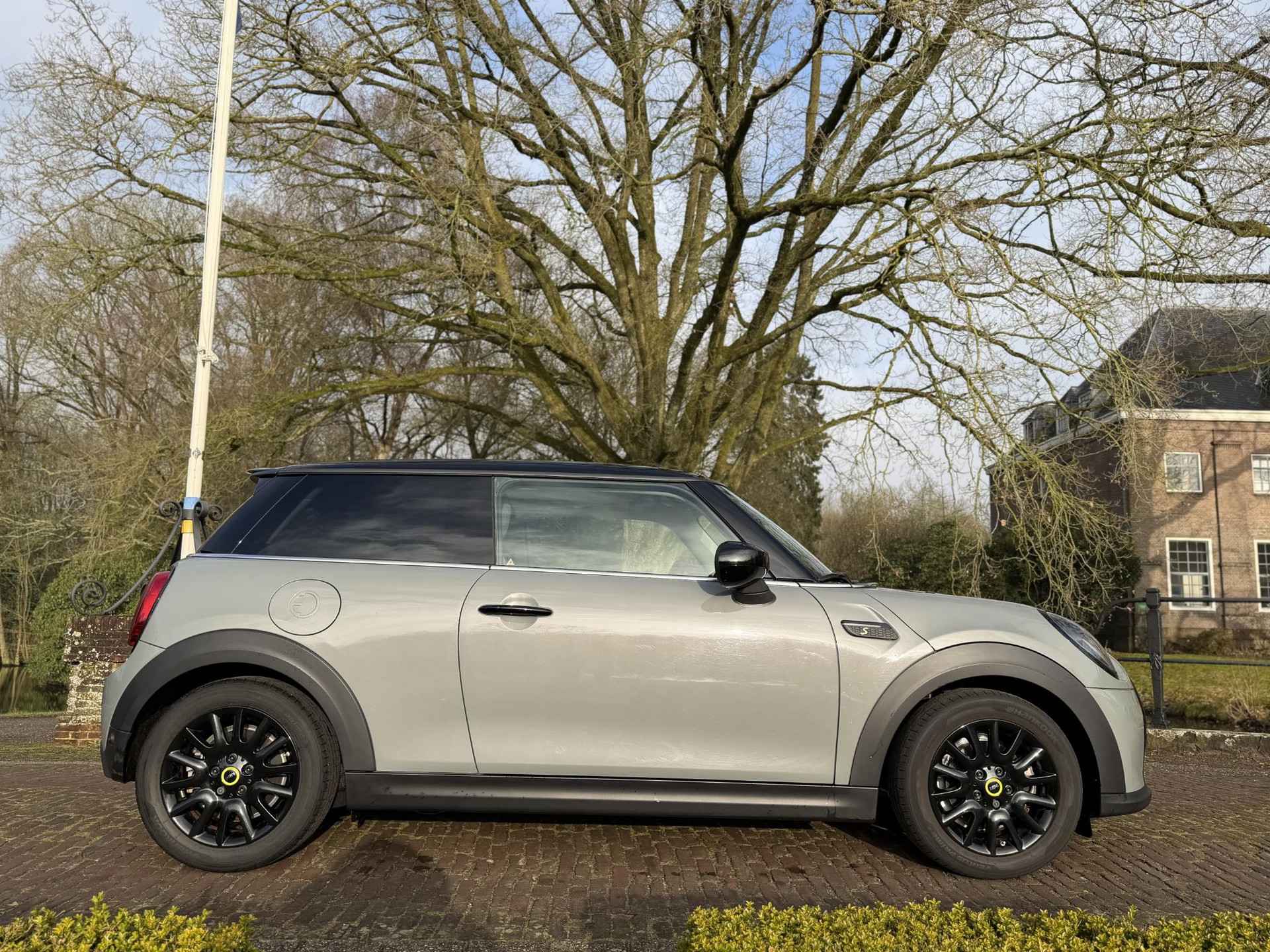Wat een gave kleur deze Mini Electric. Auto is altijd bij mini onderhouden en nog het verlengde onderhoudspakket bij Mini.