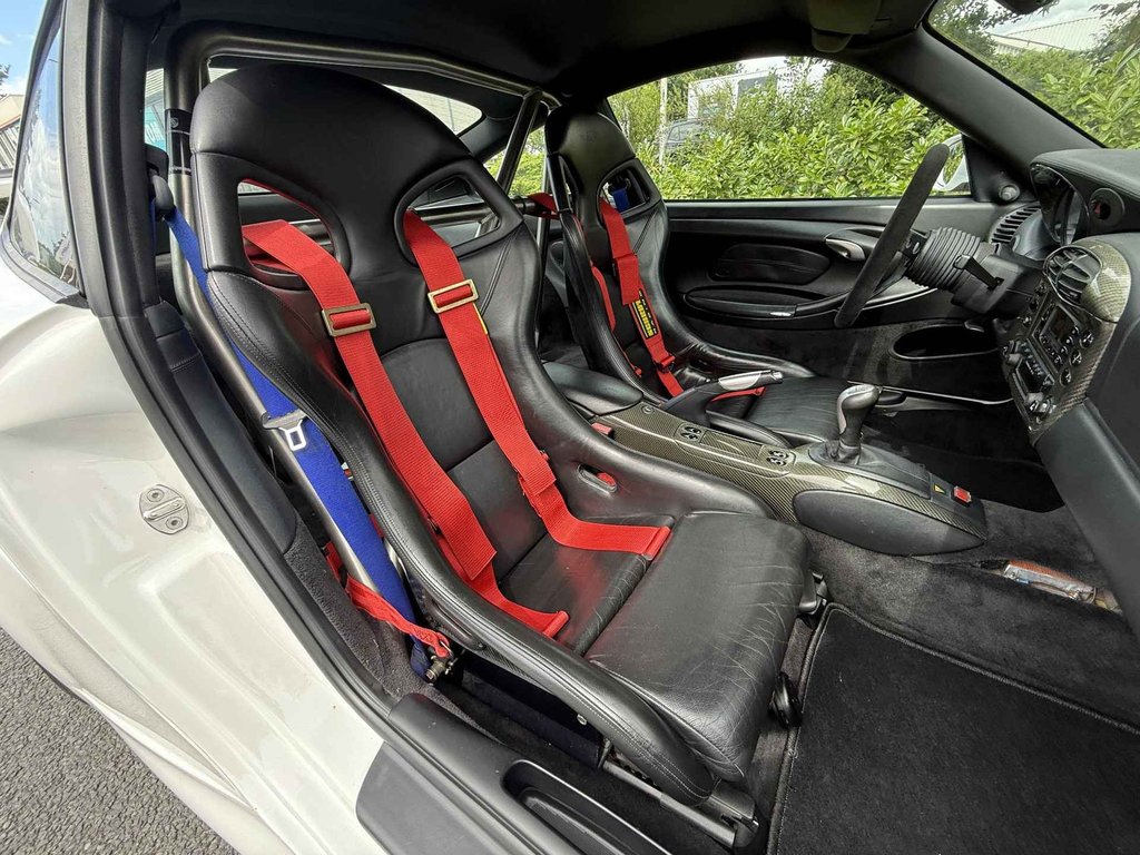 Vanbinnen zitten er zowel normale als 4-punts goedgekeurde racegordels in. Tevens zit er een originele en door Porsche gekeurde rolkooi in en originele GT3 CUP Carbon kuipstoelen! Alles ziet er geweldig netjes uit en niet versleten of uitgeleefd. Echt top!