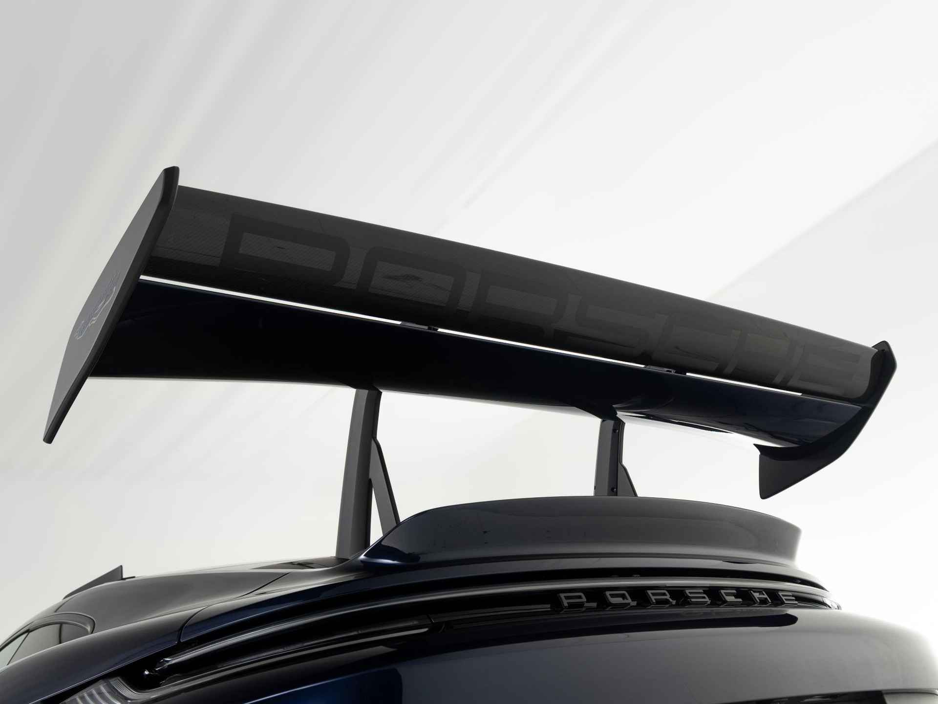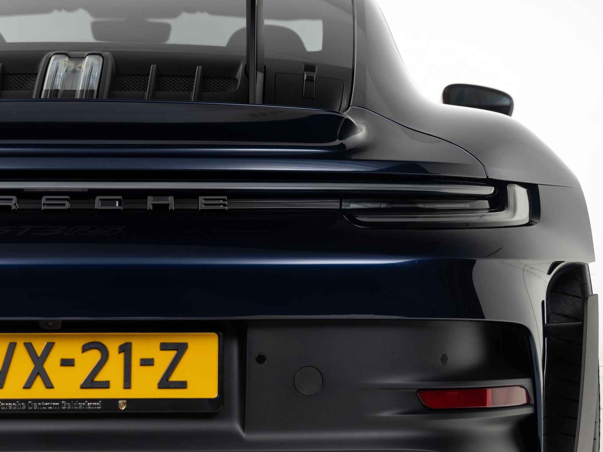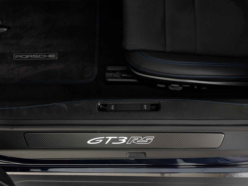 Deze Porsche 911 GT3 RS in de kleur naar keuze Midnight Blue Metallic heeft slechts 844 kilometers gereden. De Porsche onderscheidt zich onder andere door unieke opties, zoals; Adaptieve sportstoelen Plus (elektrisch 18-voudig), Interieurpakket met stiksels in afwijkende kleur, Lederen luchtroosters en lederen lamellen met decoratief stiksel, Porsche Ceramic Composite Brake (PCCB) en het Weissach pakket zonder rolkooi. Uiteraard is dit exemplaar nog verder te verfraaien door hoogwaardige accessoires van Porsche Tequipement.