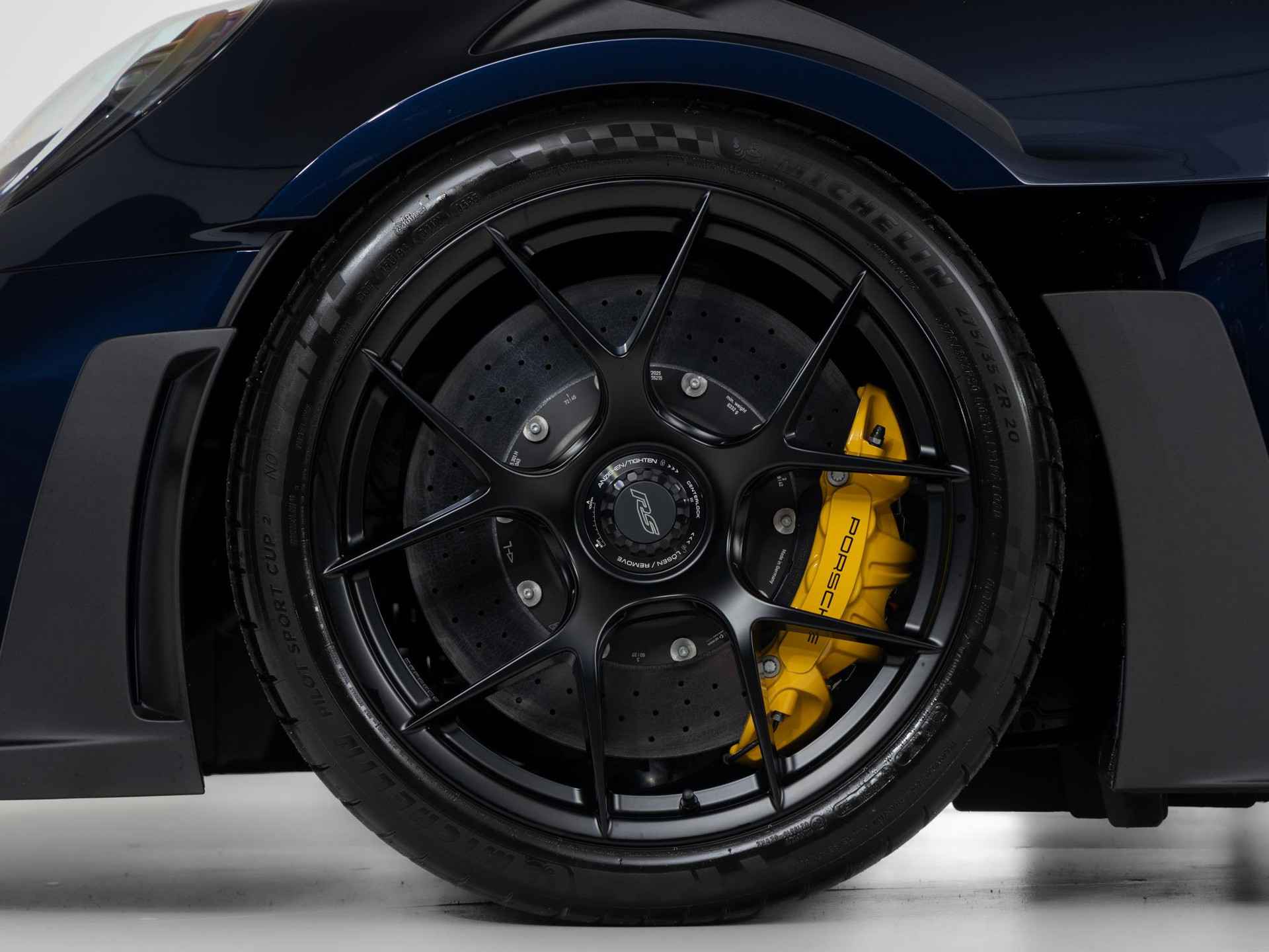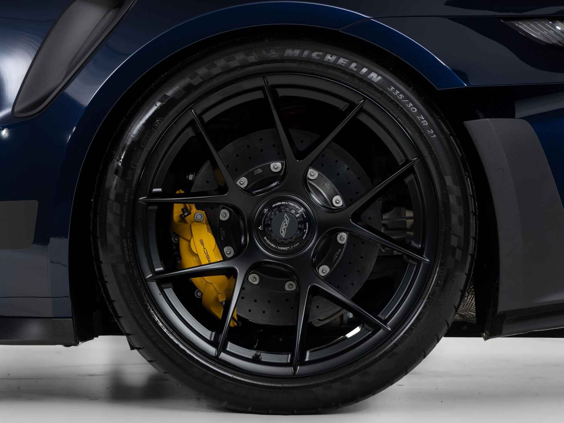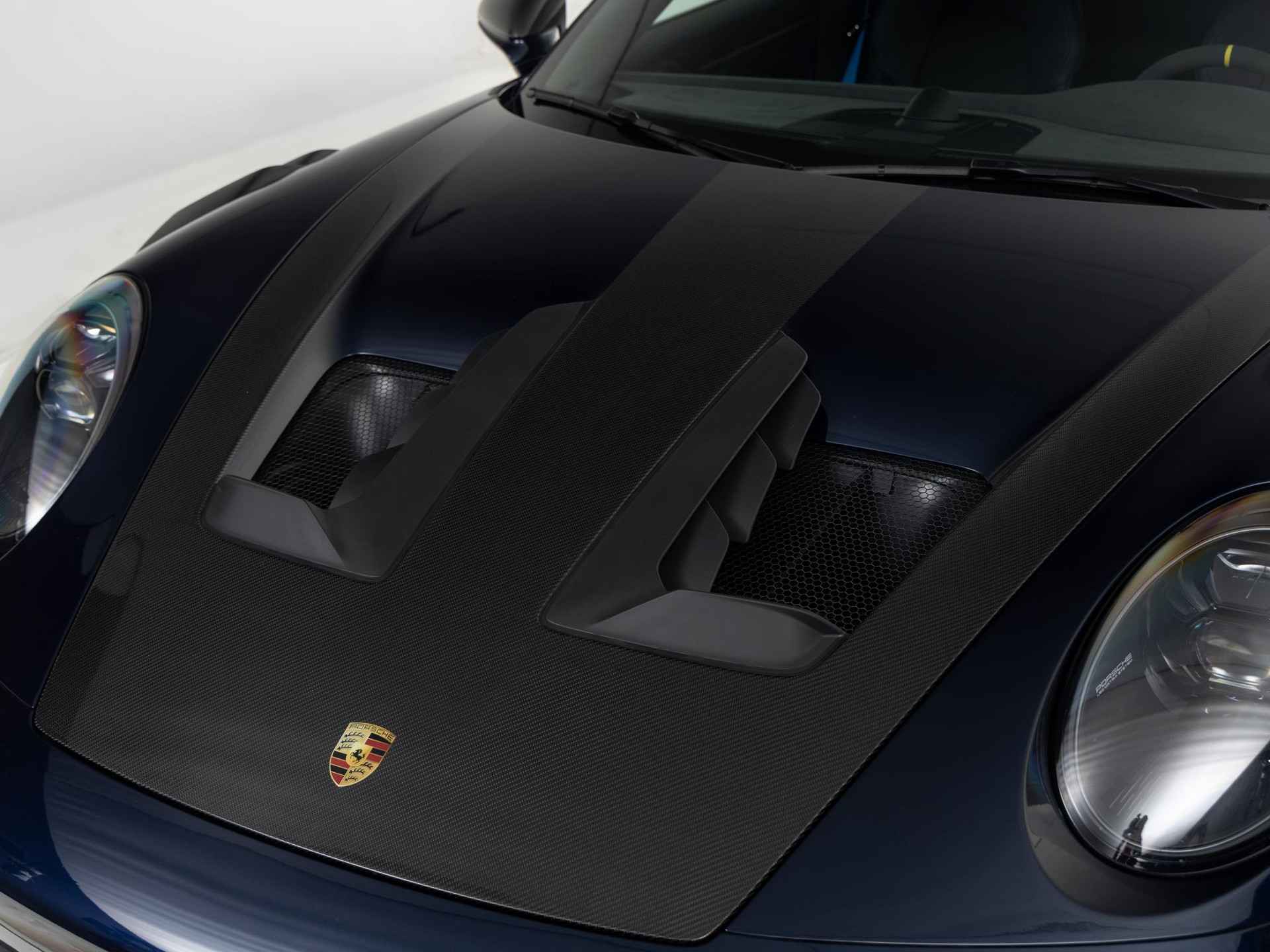 Deze Porsche 911 GT3 RS in de kleur naar keuze Midnight Blue Metallic heeft slechts 844 kilometers gereden. De Porsche onderscheidt zich onder andere door unieke opties, zoals; Adaptieve sportstoelen Plus (elektrisch 18-voudig), Interieurpakket met stiksels in afwijkende kleur, Lederen luchtroosters en lederen lamellen met decoratief stiksel, Porsche Ceramic Composite Brake (PCCB) en het Weissach pakket zonder rolkooi. Uiteraard is dit exemplaar nog verder te verfraaien door hoogwaardige accessoires van Porsche Tequipement.