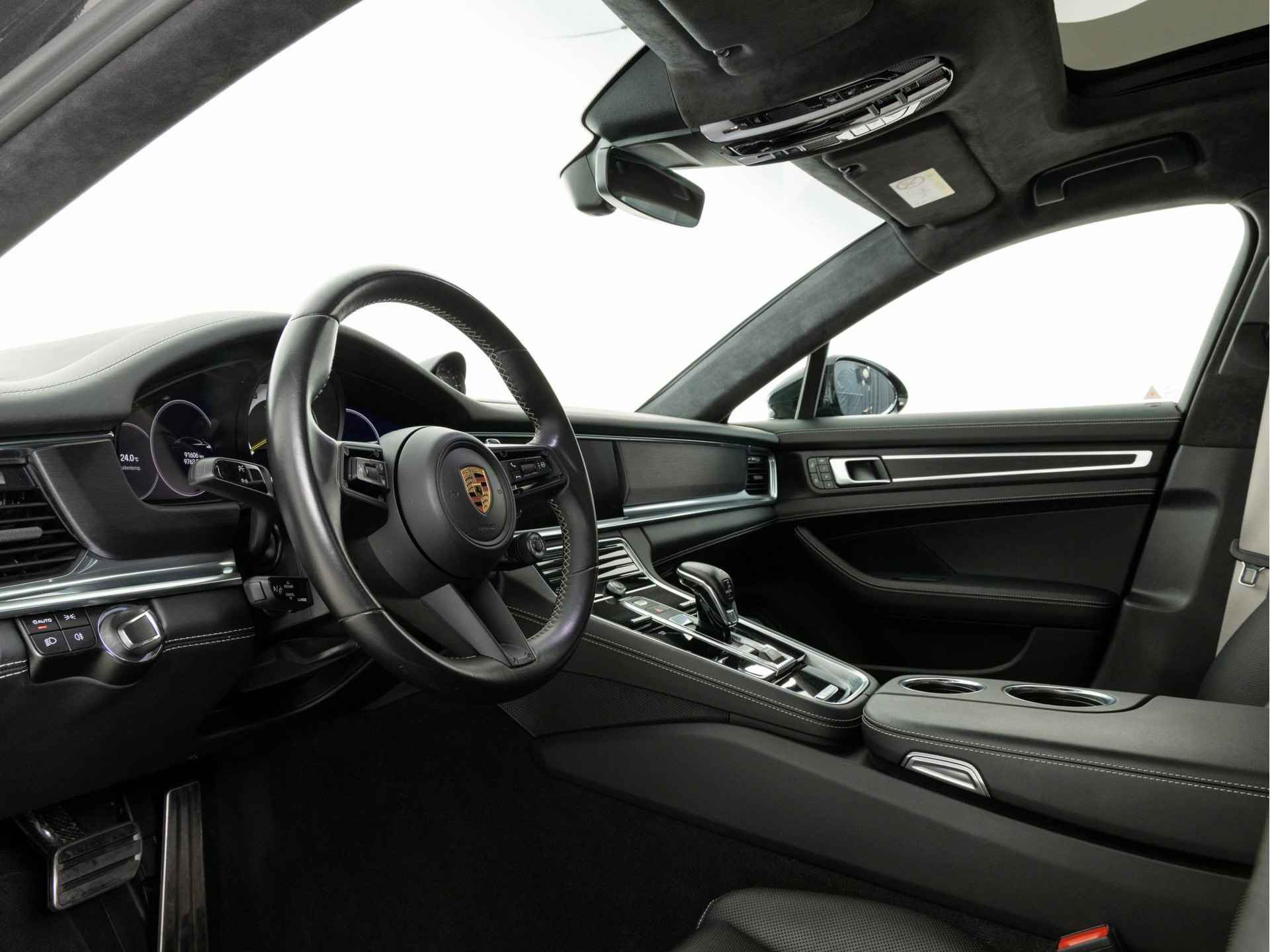 Deze Porsche Panamera 4 E-Hybrid Sport Turismo in de kleur Vulkaangrijs metallic heeft slechts 91.586 kilometers gereden. De Porsche onderscheidt zich onder andere door unieke opties, zoals; Comfortstoelen achter (8-voudig elektrisch) met geheugenpakket, Interieurpakket stiksels in afwijkende kleur, Stoelventilatie en massagefunctie voorin en achterin en Hemelbekleding Alcantara®. Uiteraard is dit exemplaar nog verder te verfraaien door hoogwaardige accessoires van Porsche Tequipement.