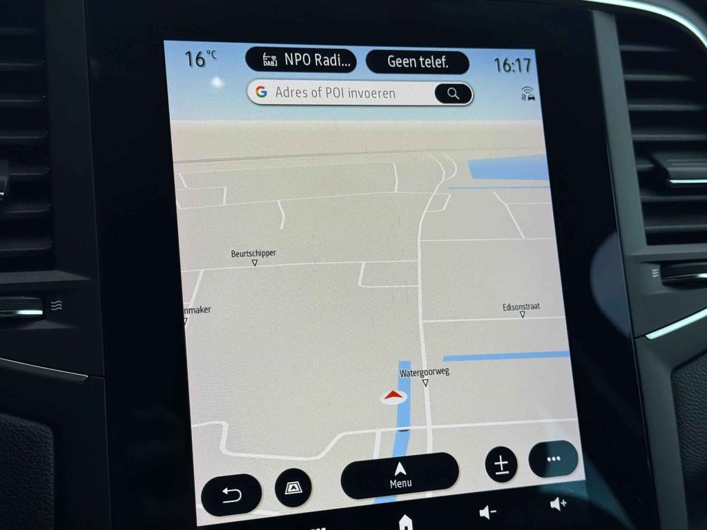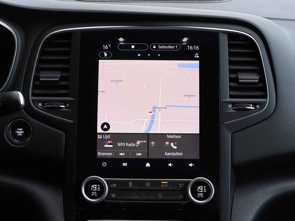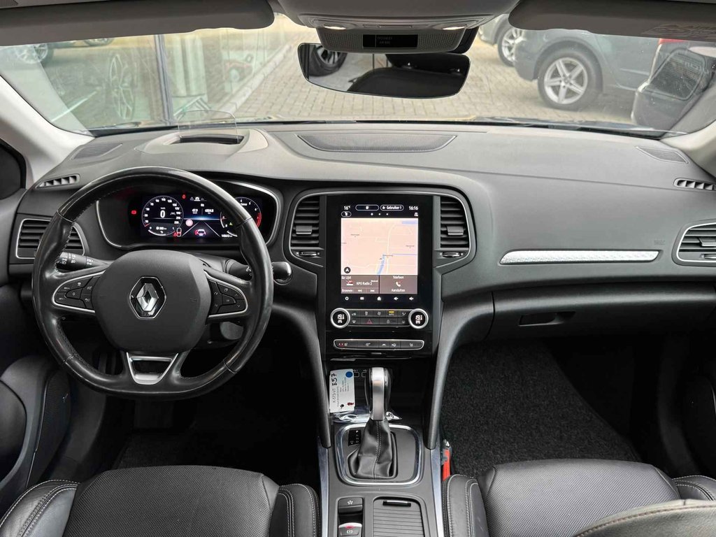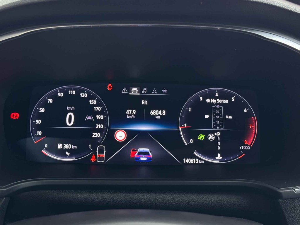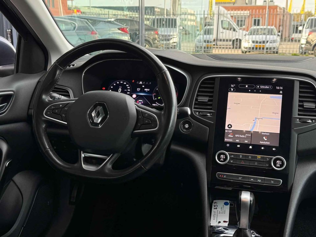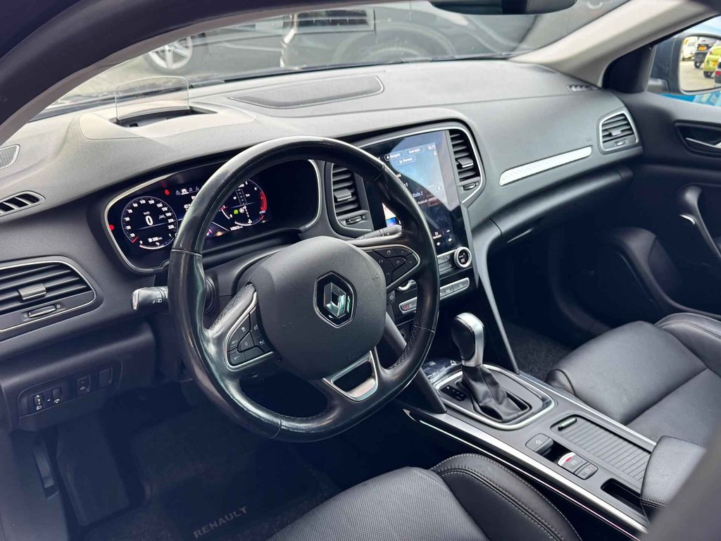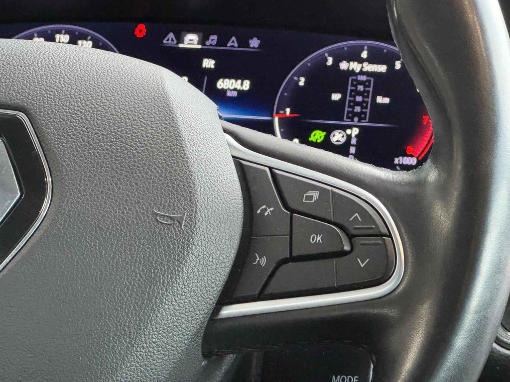 Met het digitale dashboard kunt u de cockpit-interface naar uw voorkeur instellen. Wat een gemak, die achteruitrijcamera. Alles in beeld zonder capriolen. De auto is voorzien van een trekhaak en is een uitstekende caravantrekker. U bedient het full map navigatiesysteem en het audiosysteem met DAB-radio via knoppen op het stuur. Zo kunt u steeds uw aandacht gericht houden op de weg. Tot de standaard uitrusting van deze auto hoort ook automatische airconditioning. Ook is de Renault uitgerust met: regensensor, cruise control, keyless entry, automatisch dimmende binnenspiegel, lederen stuur en boordcomputer.