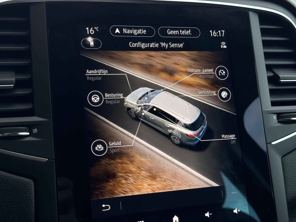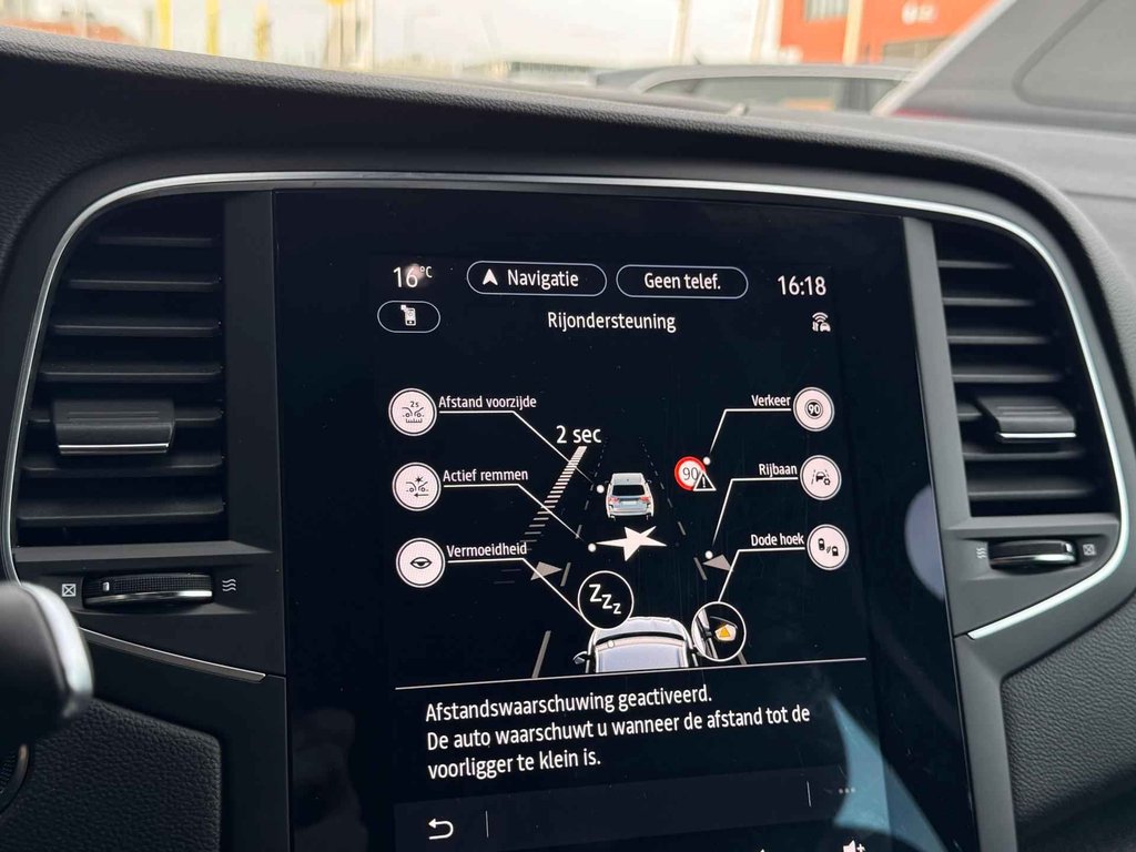 De Renault Mégane Estate is ook voorzien van ADAS. Deze Advanced Driver Assistence Systems fungeren als extra ogen en oren: ze houden voor u de weg in de gaten en grijpen in wanneer dat nodig is. Rijden met het overzicht van een straaljagerpiloot? De praktische en veilige head-up display projecteert dashboardinfo binnen uw gezichtsveld, zodat u uw blik nooit hoeft te verplaatsen. Oog op de weg! Een belangrijke bijdrage aan de veiligheid onderweg levert de verkeersbord-detectie. Deze Renault Mégane Estate is ook behulpzaam als het gaat om een rechte koers. Het Lane-keeping systeem signaleert en corrigeert als u onbedoeld de rijstrooklijnen dreigt te overschrijden. Ook helpen het dodehoekdetectie, forward collision warning system, hill hold functie, brake assist en bandenspanningcontrolesysteem, uw rit tot een veilige rit te maken.