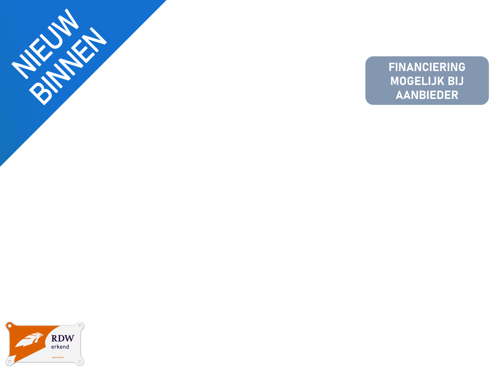 Hoewel de informatie op deze website permanent zo accuraat en actueel mogelijk wordt weergegeven, zijn wijzigingen in modellen, uitvoeringen, prijzen, technische specificaties, afbeeldingen, of andere informatie op deze website te allen tijde voorbehouden. Het is onmogelijk om transmissiefouten volledig uit te sluiten. Aan de inhoud van deze website kunnen derhalve op geen enkele wijze rechten worden ontleend. Wij adviseren de opties en specificaties zelf te controleren. Bij twijfel kan u ons altijd vrijblijvend contacteren.