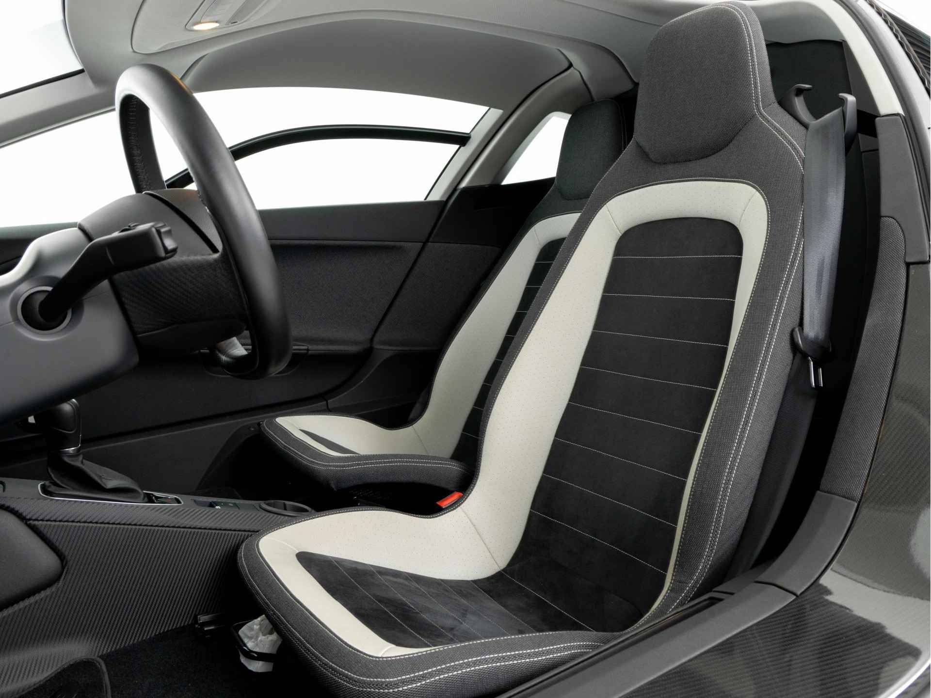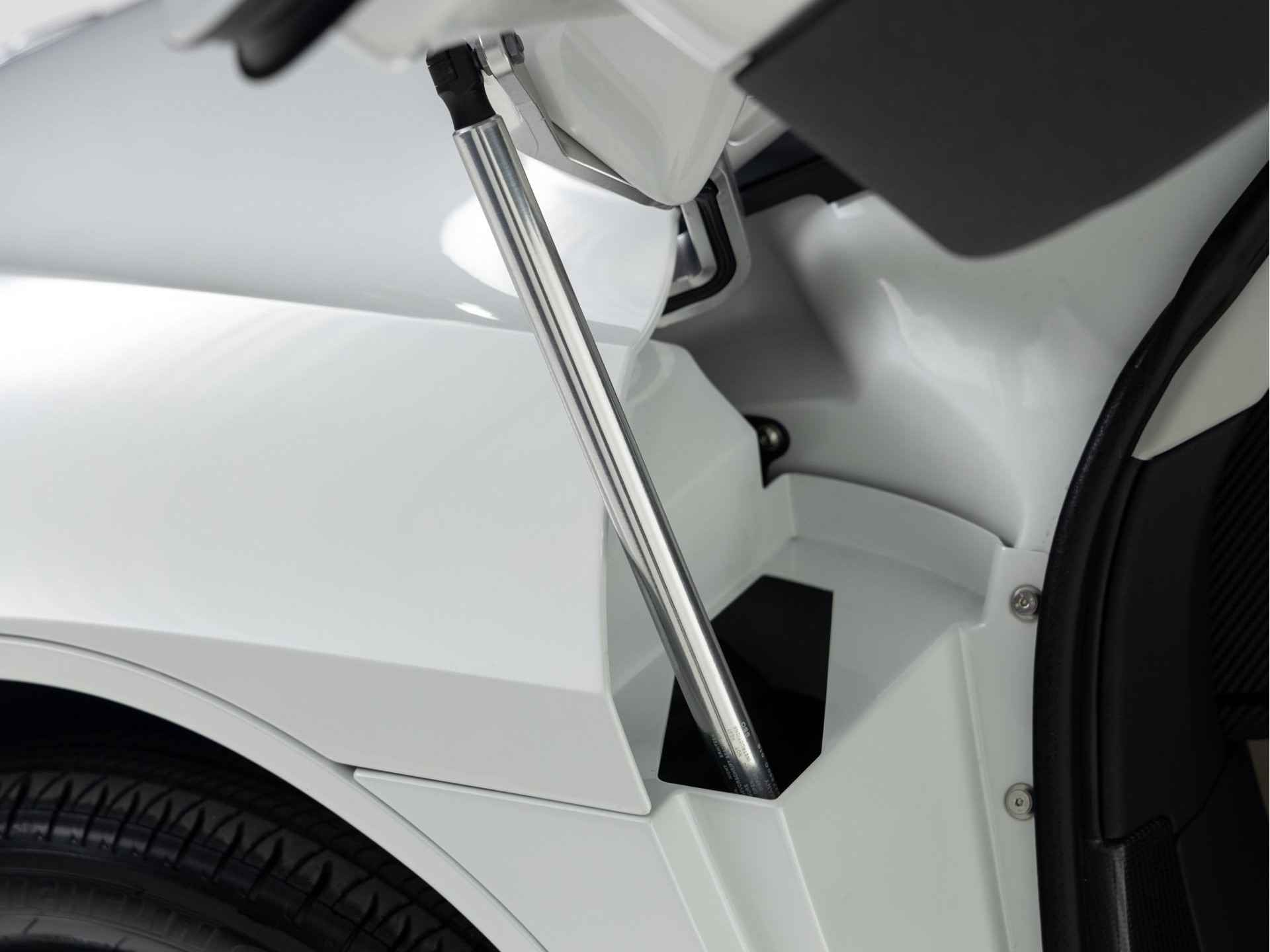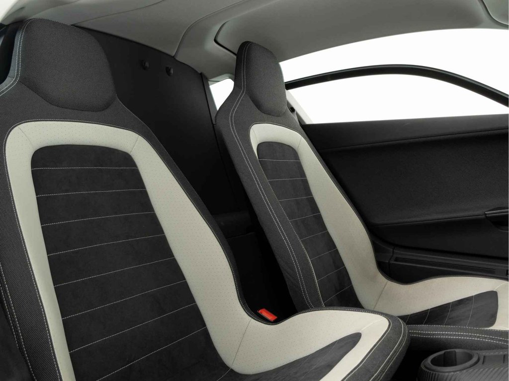 Opvallend is dat de tweezitter geen spiegels heeft, maar in de plaats daarvan kleine aerodynamische camera's op de deuren.
